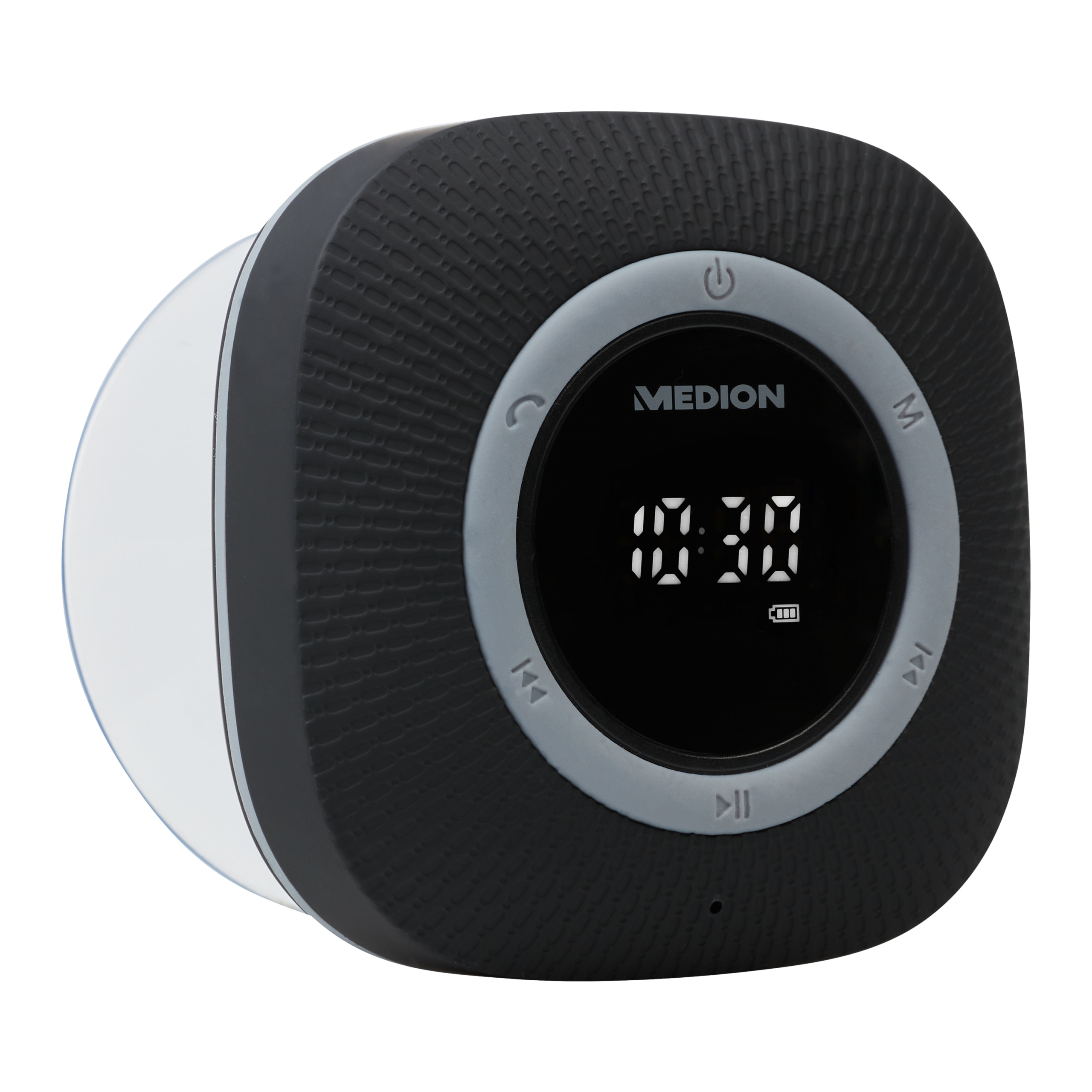 динамік Medion MD43881 оснащений радіо FM. Водонепроникний індекс IPX6 дозволяє використовувати динамік в інших місцях, де інші динаміки не впораються.