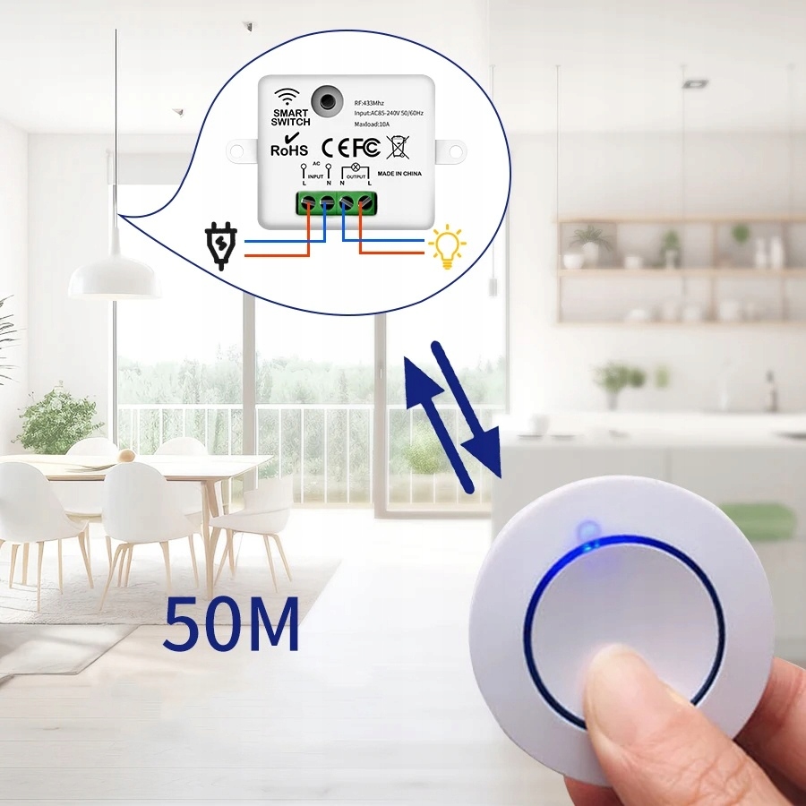 Драйвер реле — це радіоприймачі, настінний перемикач — лише радіочастоти. Сам настінний вимикач не може контролювати вмикання та вимикання світла, він має працювати з радіочастотним приймачем.