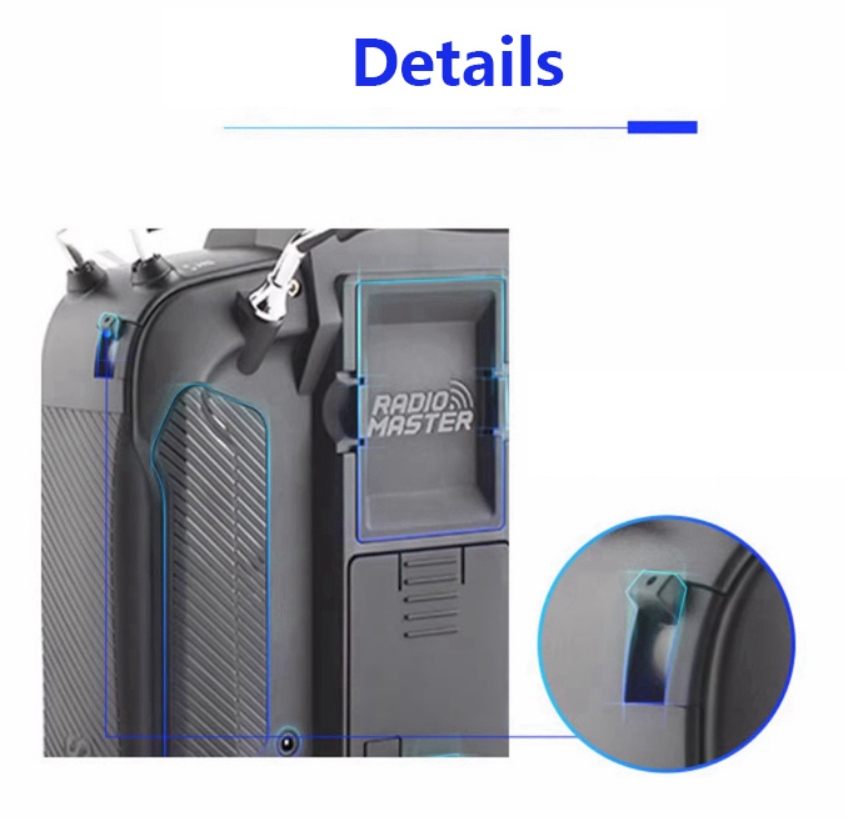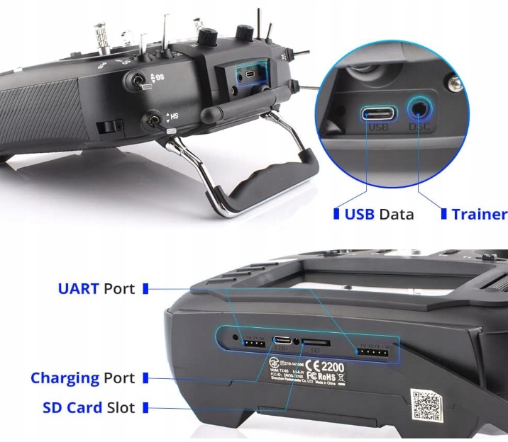 Передавач пропонує сумісність зі стандартними модулями JR (наприклад, перехресним вогнем, 4in1) та портом DIY на задній частині корпусу, що дозволяє прості розширення та модифікації. Забезпечує зручне зчеплення, швидкий доступ до джерела живлення та міцності під час інтенсивного використання.