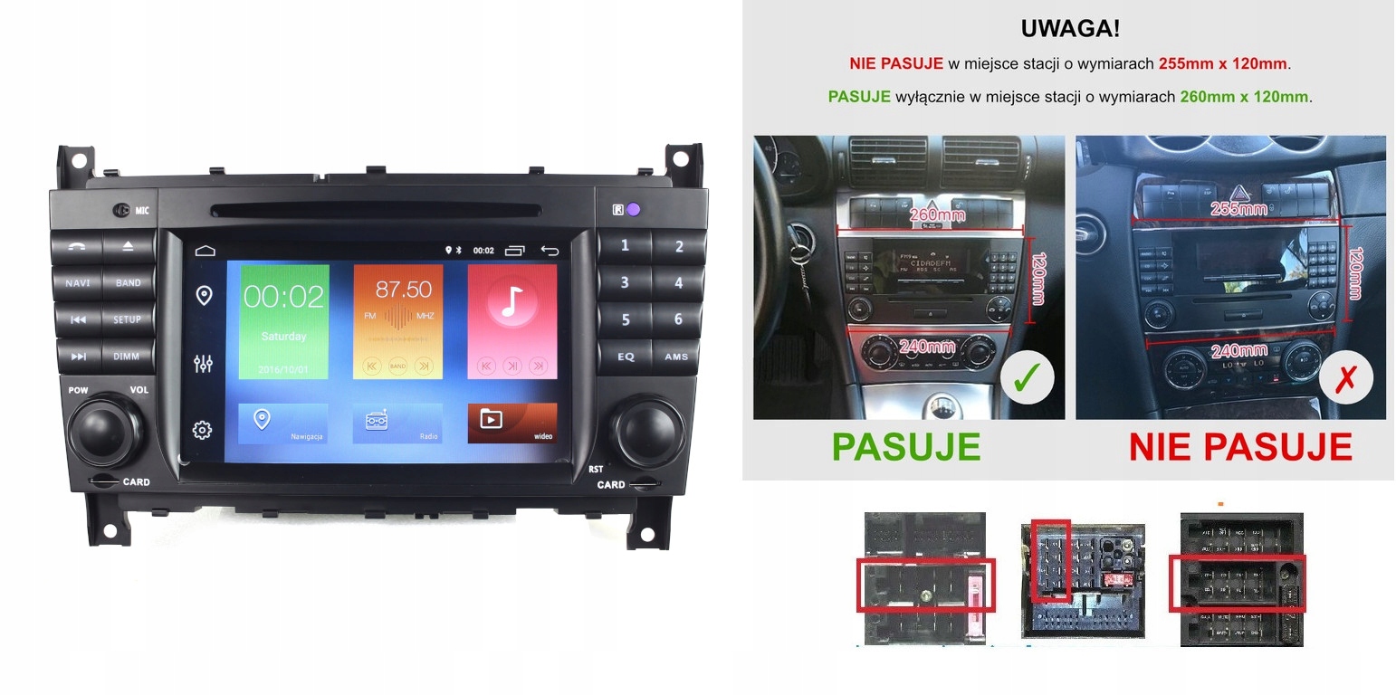 Пропонований пристрій взаємозамінно підходить лише до місця, де знаходиться заводська магнітола з CD. Він не підійде, якщо в Mercedes є радіонавігація або оптоволоконна установка MOST.