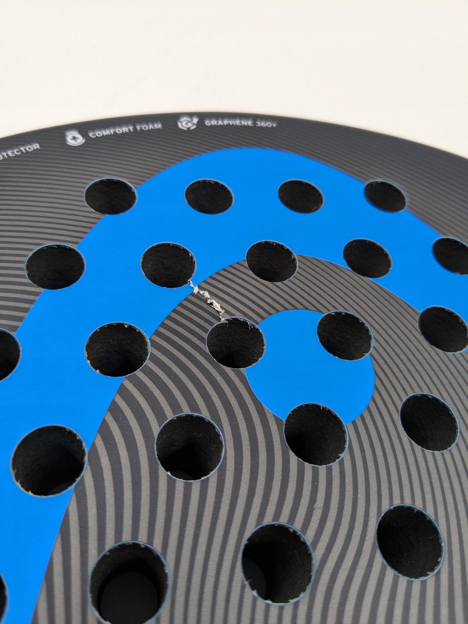 Залишайтеся легкими, м’якими та зручними завдяки ZEPHYR PRO для дотику та комфорту. Покращена технологією Graphene 360+ для більшої гнучкості та відчуття, ця ракетка легка, м’яка та зручна на дотик, а також проста у грі. Ви відчуєте контроль і комфорт завдяки ZEPHYR PRO, який має круглу форму. Щоб продовжити термін служби ракетки, вона оснащена вбудованою системою захисту, попередньо сформованим бампером з вуглецевого волокна, який захищає від сколів і подряпин. Новий дизайн надає йому сучасного шарму.