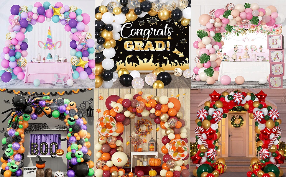 🎈 【Підходить для різних випадків】 Наш набір арки з повітряних кульок для вечірки, весілля, дня народження, Різдва, дитини душ, випускний, ювілей, День подяки, Новий рік та будь-яке особливе свято. Ви можете творчо прикрасити свою вечірку різними повітряними кулями.