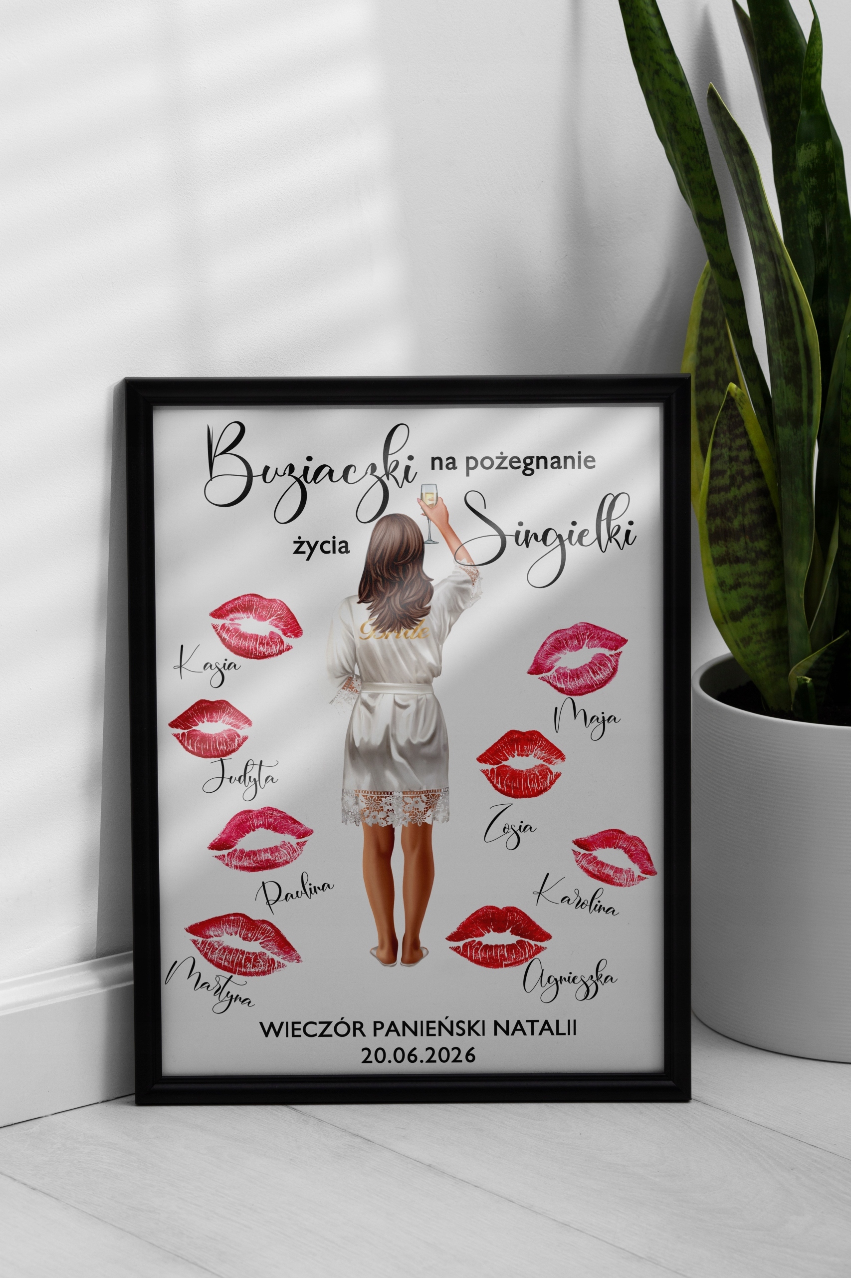 Чудова РАМКА - ПОЦІЛУНКИ ПЛАКАТ із ФІГУРОЮ майбутньої нареченої для ДВІЧНОЇ ВЕЧІРКИ!