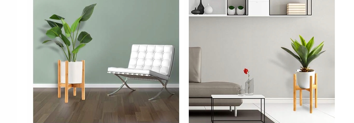 мінімалістичний, сучасний стиль: дерев'яна підставка для рослин з найновішим, унікальним дизайном. Прості дерев’яні ноги та чистий прямокутний дизайн відрізняють класичний стиль половини віку за допомогою поєднання сучасного мистецтва.