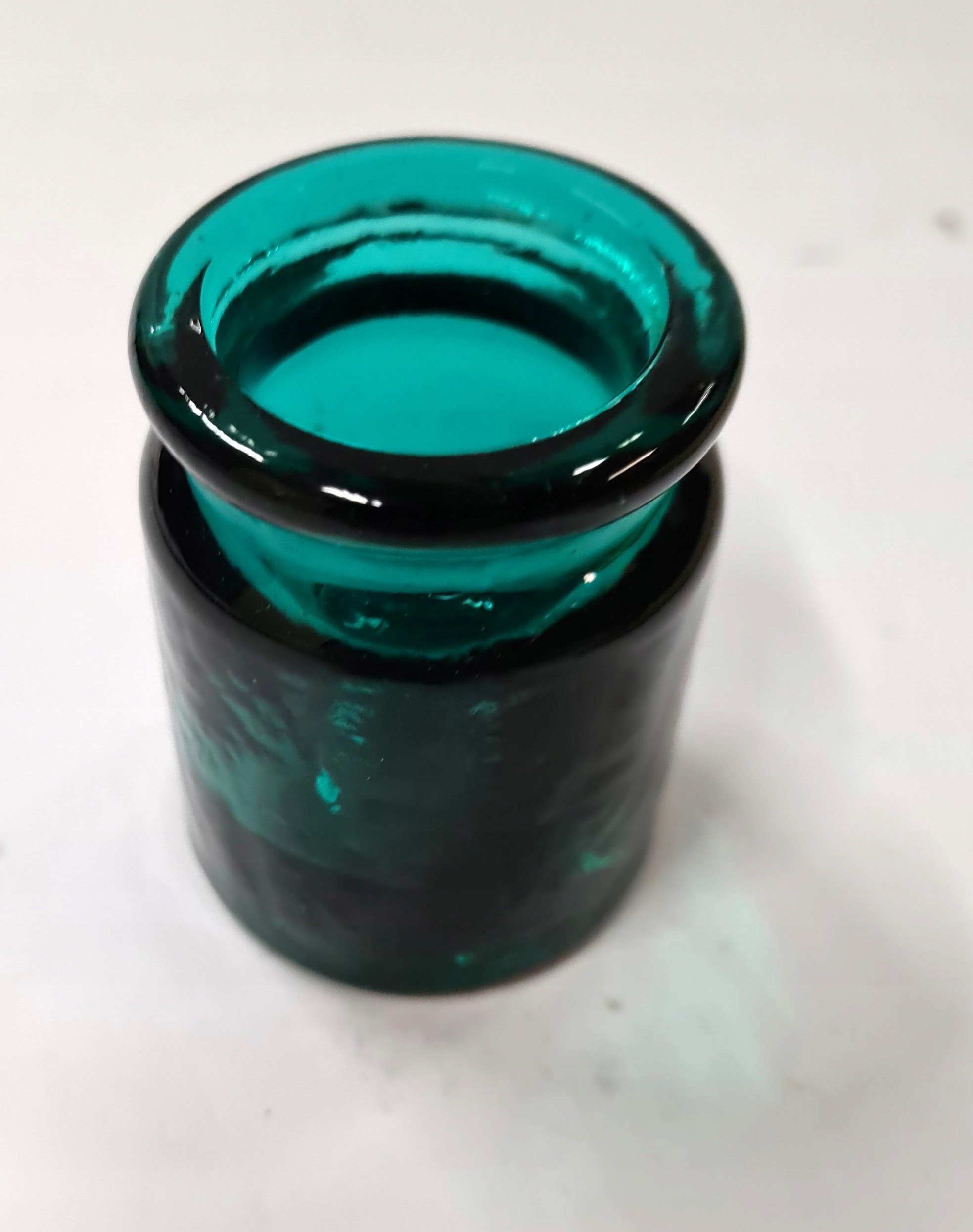 Ręcznie wykonana buteleczka dekoracyjna szkło głęboka butelkowa zieleń