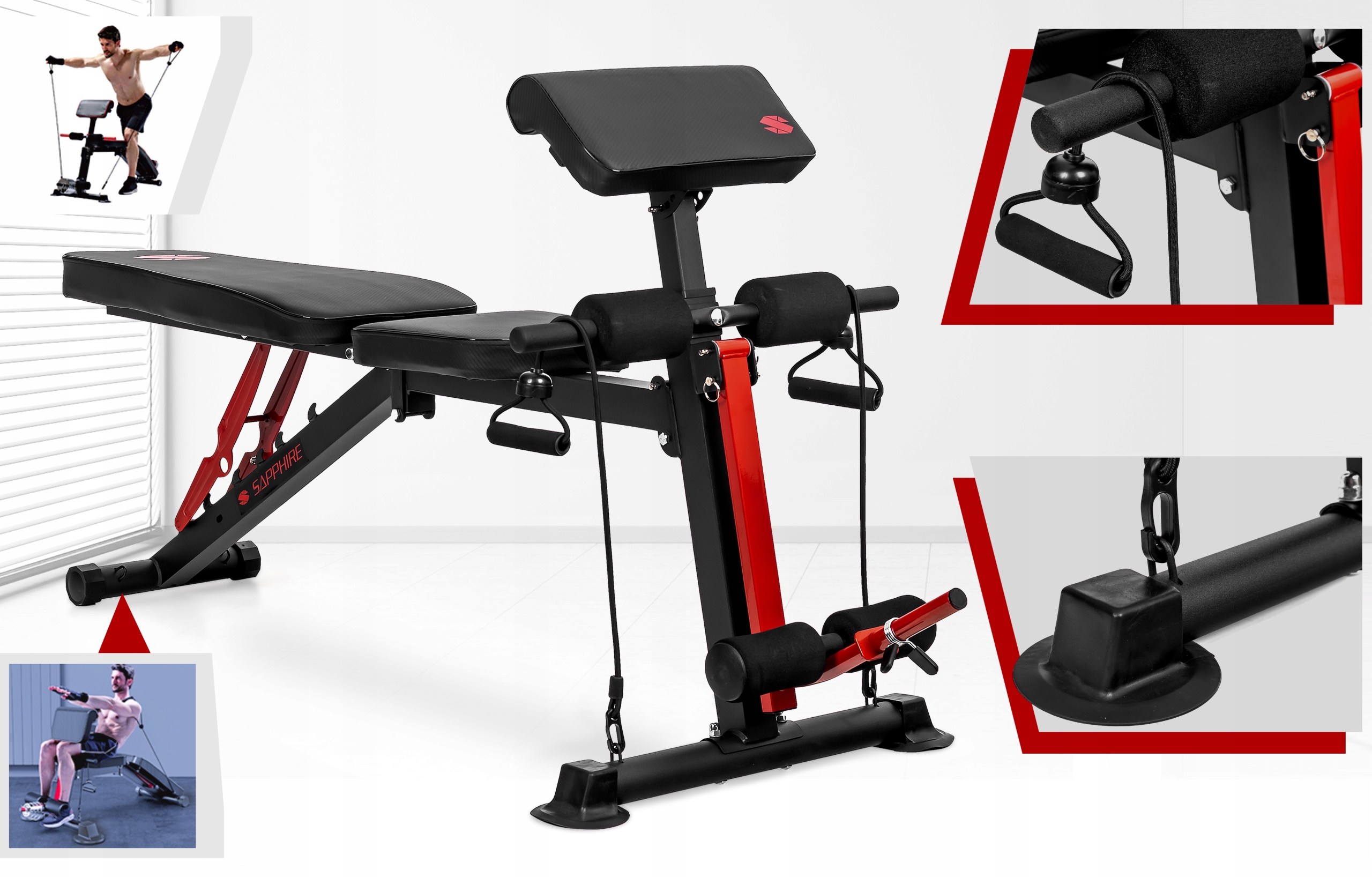 - Стабільна конструкція лавки та надзвичайно ретельна обробка забезпечують додаткову безпеку вправи.
