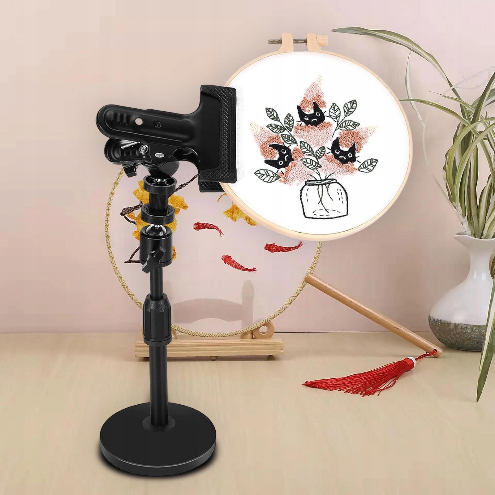 [обертова конструкція] вишивки можна обертати на 360 градусів. Регулюючи гвинти, ви можете відрегулювати висоту та кут під свої вишивки