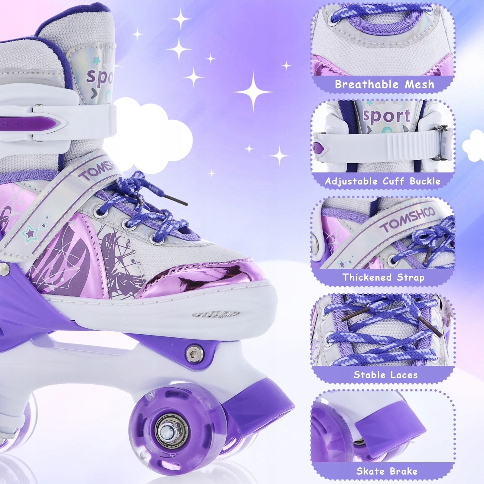 Цей 4-х, що регулюється 4-х, світлий рулон, оснащений миготливими та світлодіодними світлими колесами, може світити як вдень, так і вночі. Унікальний дизайн поверхні взуття, яскраві кольори, дозволяє дітям практикувати свої тіла, граючи та насолоджуючись грою зі спортом.