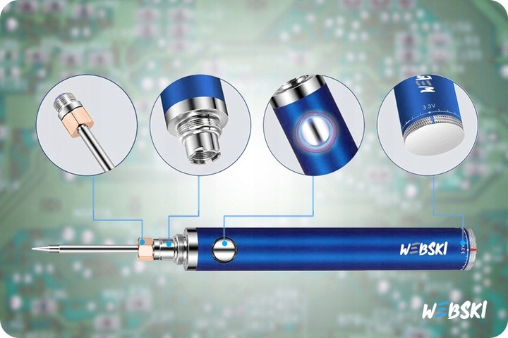 - побудований -in акумулятор 1100 мА H дозволить паякувати до години при максимальній потужності.