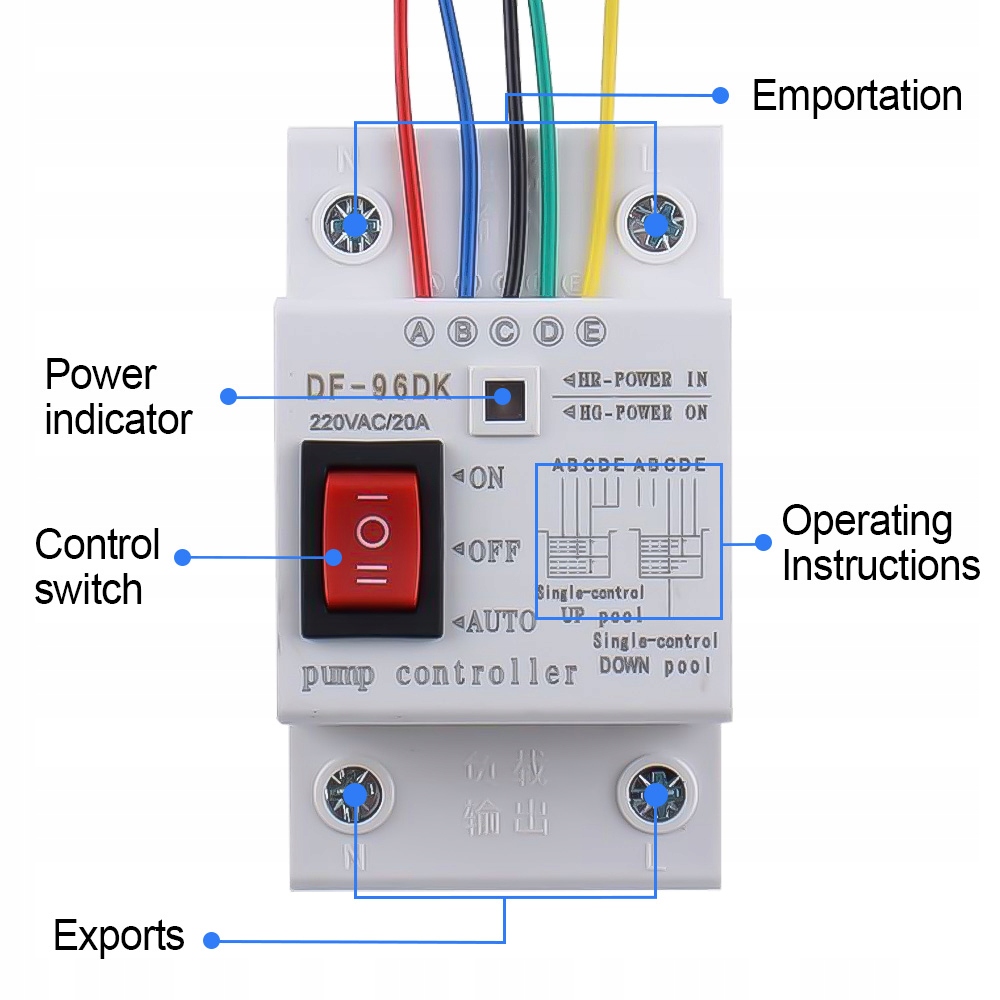 - Перемикач контролера води DF-96DK-це універсальний і надійний пристрій для автоматичного виявлення рівня води та управління в резервуарах з водою. Завдяки ефективній функціональності він забезпечує безпроблемне управління рівнем води без ручного втручання.