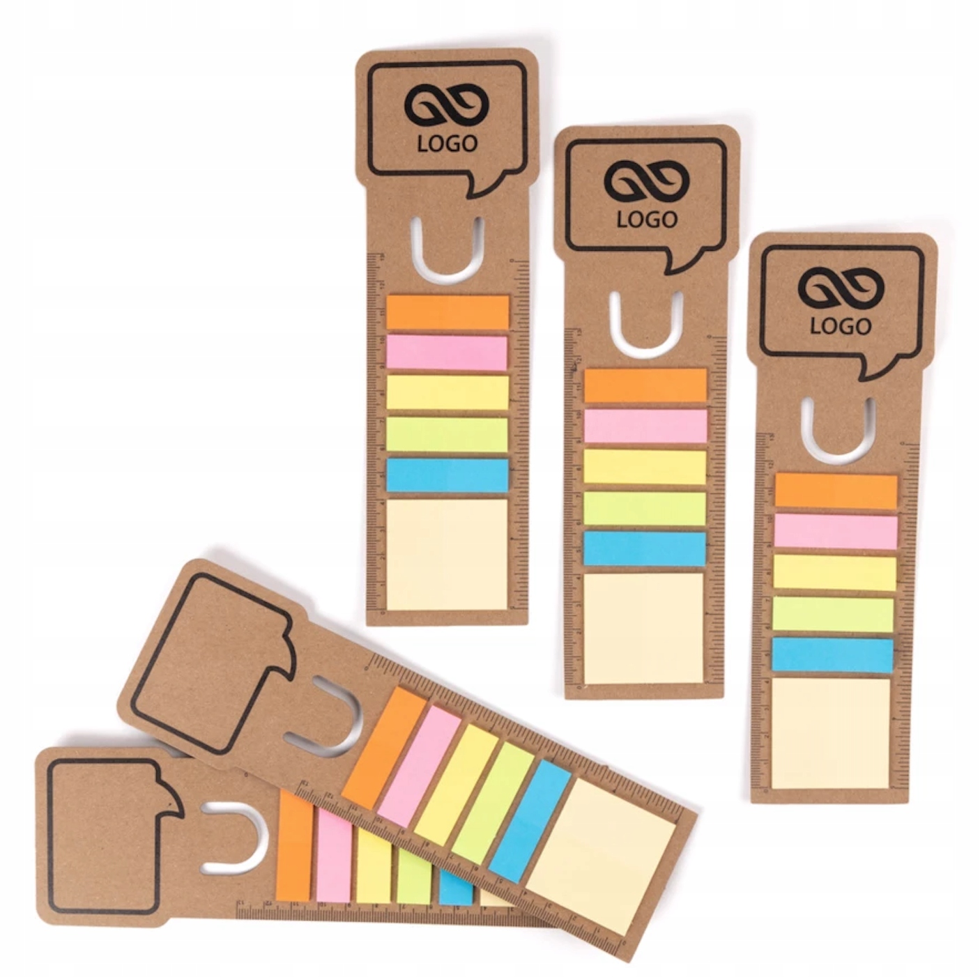 Закладка з лінійкою - цікавий гаджет, який неодмінно стане в нагоді кожному. Закладка виготовлена з паперу і має розміри 67 х 210 х 2 мм. Крім закладки, його можна використовувати і як лінійку. Має 5 маленьких самоклеючих паперових закладок різних кольорів. Крім того, у ньому також є жовті папірці, які слугуватимуть блокнотом. Предмет невеликий і поміститься в будь-яку сумочку або кишеню. Такий гаджет можна дарувати як невеликий подарунок на всіляких корпоративах, ярмарках або тренінгах.
