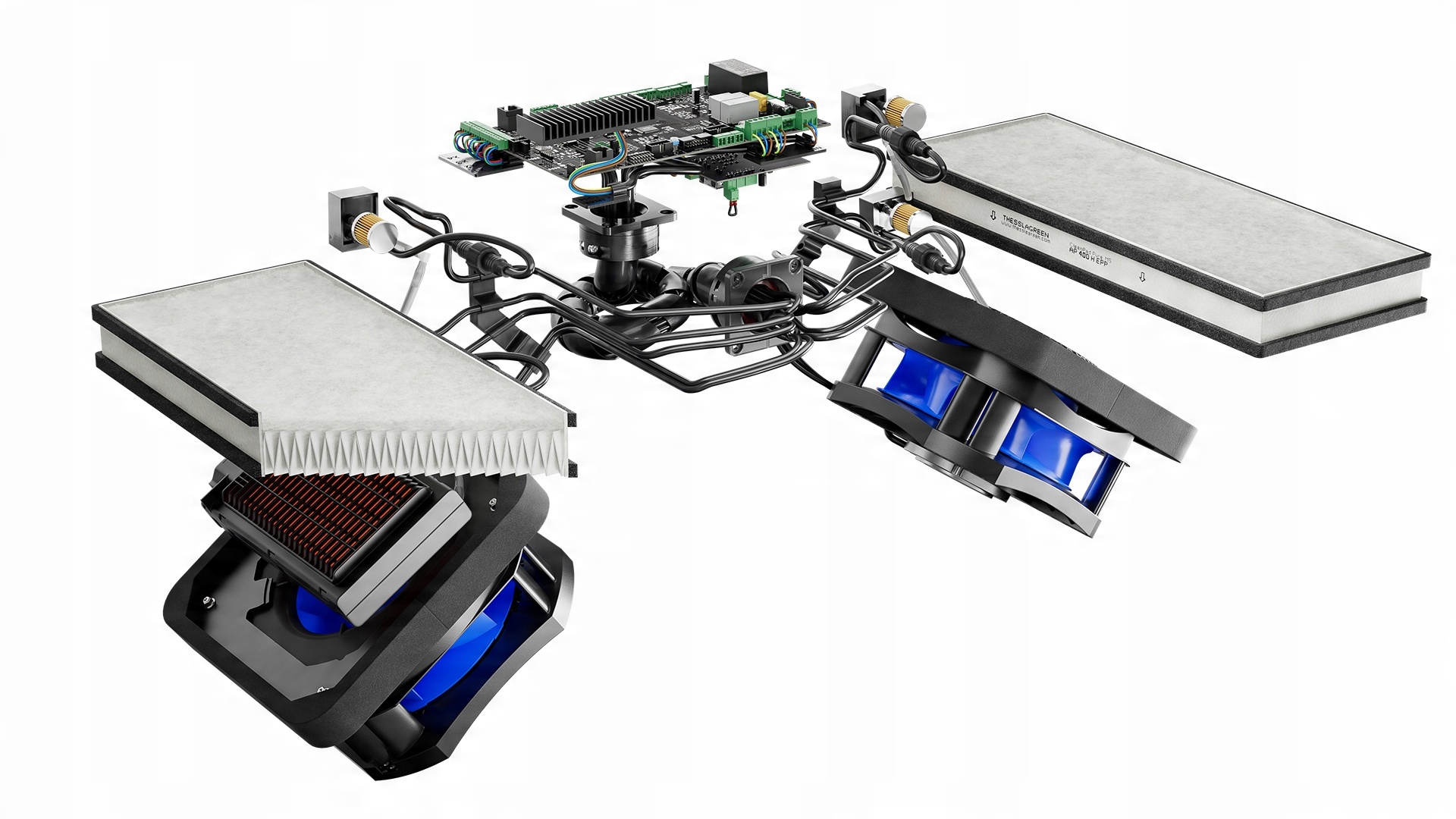 розташований перед теплообмінником, дозволяє використовувати кілька тисяч каналів теплообмінника для розсіювання акустичної енергії, що генерується робочим колесом вентилятора