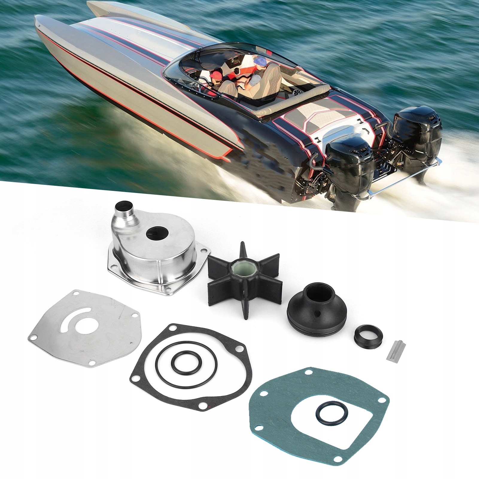 1. Пряма заміна старої та пошкодженої. Довідковий номер OEM - 817275A5. 2. Цей комплект для ремонту водяного насоса, призначений для відповідності підвісних двигунах DFI/EFI з 225