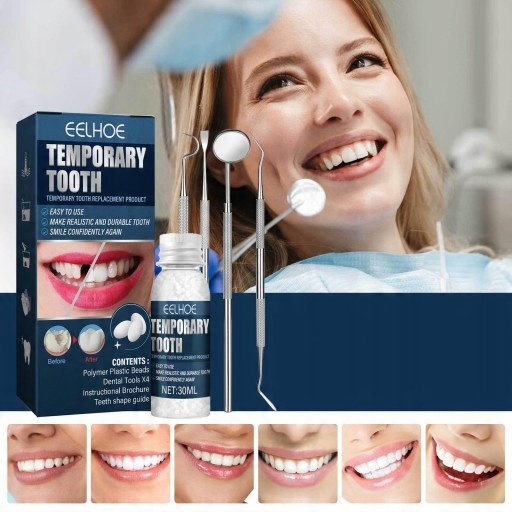 - Тимчасовий ремонт: набір для ремонту зубів можна використовувати для тимчасового ремонту втрачених і зламаних зубів і допомоги людям, які втратили зуби, швидко відновити чисті зуби .