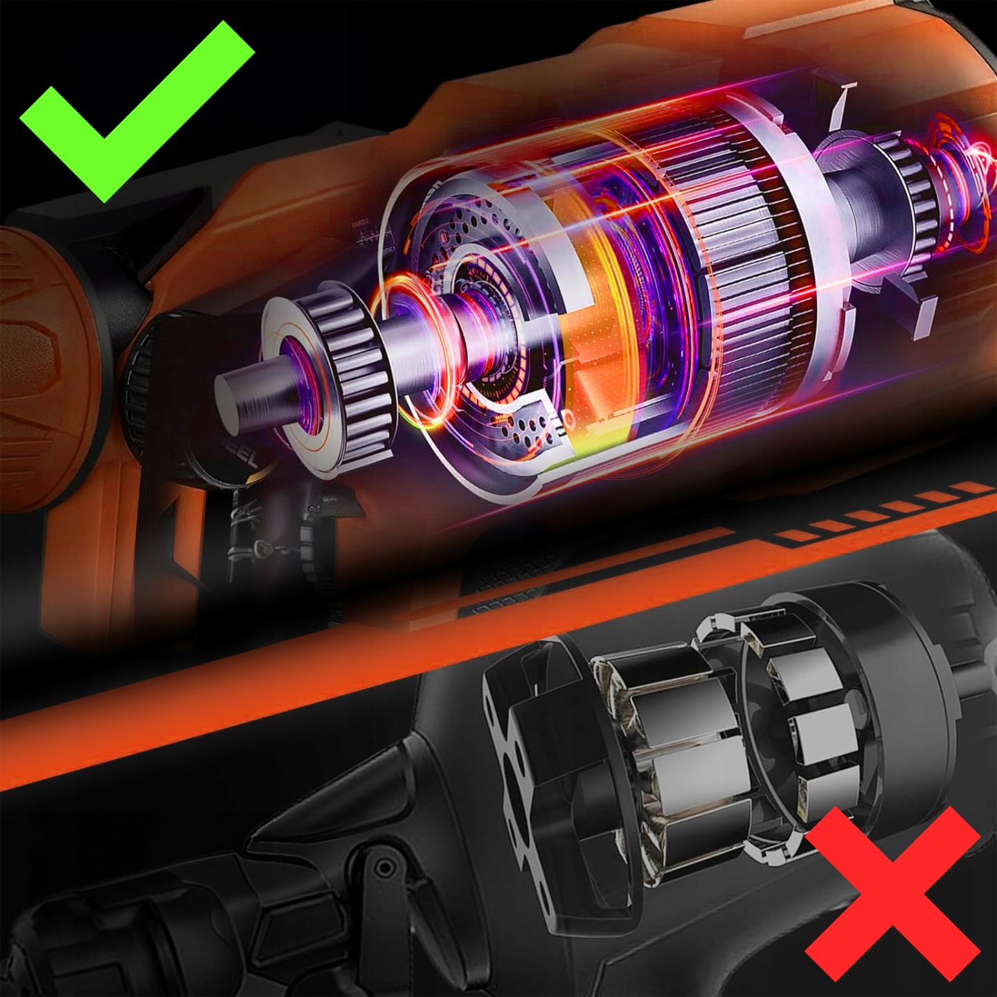 ✔ потужність 550 Вт - Висока ефективність Завдяки високому потоку повітря 160 л/хв при низькому тиску - Ідеальне покриття без надмірного бризки - заощадження матеріалу. Енергетична двигун - низьке споживання енергії дозволяє довше малювати без частого зарядки. 4