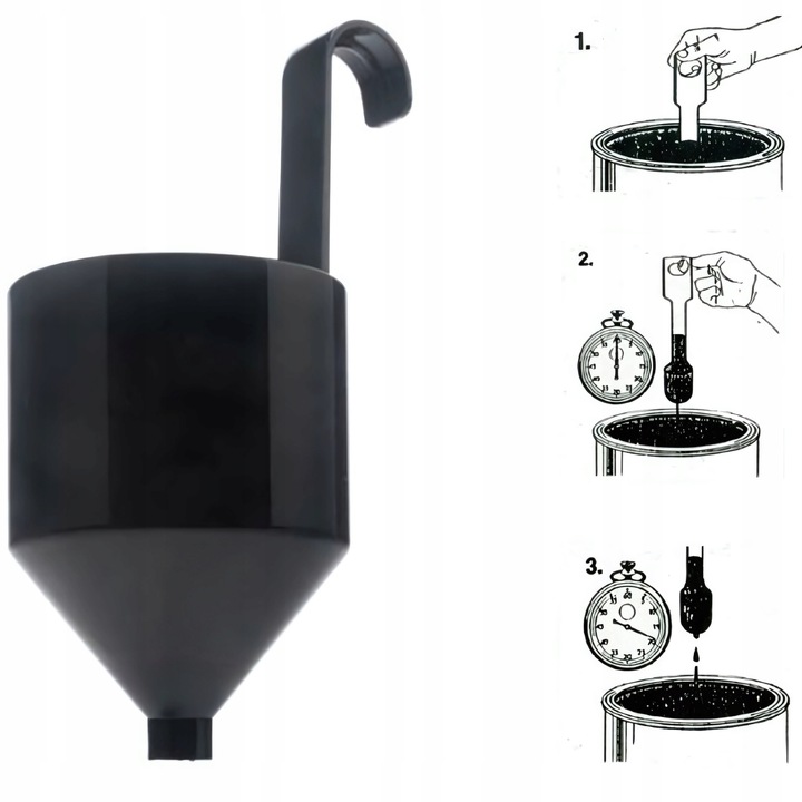 ✔ Виміряйте - підніміть кружку вертикально, увімкніть секундомір і дотримуйтесь вільного потоку фарби.