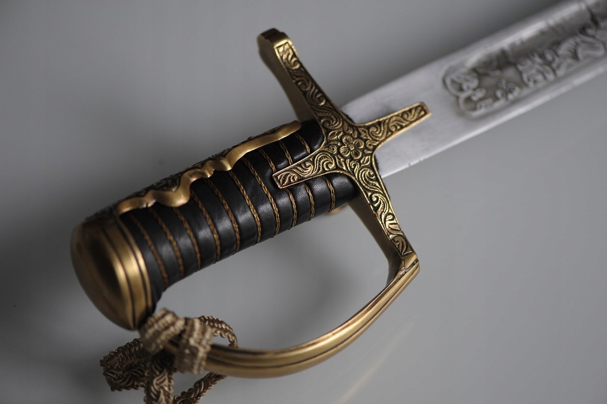Технічні дані: 4 Це мало допомогти відновити владу польської армії. Шабля, яку також називали "Чорний", використовувалася для боротьби з конем, мала закриту ручку і її характеризували простий джелес. На сьогоднішній день експерти з тем говорять про неї: єдину справді "польську шаблю". Польська шабля Hussar зазвичай використовувала офіцери та еліта для верхової їзди. Ми представляємо вам унікальну репліку з гравірованим лезом та оригінальною ручкою (з одного боку леза, серед рослинних прикрас, напис: Ісус Марія Йозеф, з іншого: Гуссарія) . Металеві елементи, виготовлені з високої вуглецевої відшліфованої сталі. Опитування проводиться до рівномірної, матової, гладкої структури. Репліка не заточена і не підходить для заточення. Будь ласка, не використовуйте Saber для огородження - вони служать відмінною декоративною статтею дизайну інтер'єру, сувенірів або подарунків . Ми рекомендуємо час від часу лезо та піхву, що зберігаються з дуже тонким шаром оливкового або іншого масляного засобу (це допоможе підтримувати продукт високої якості) ідеально підходить для посвячення гравірування.