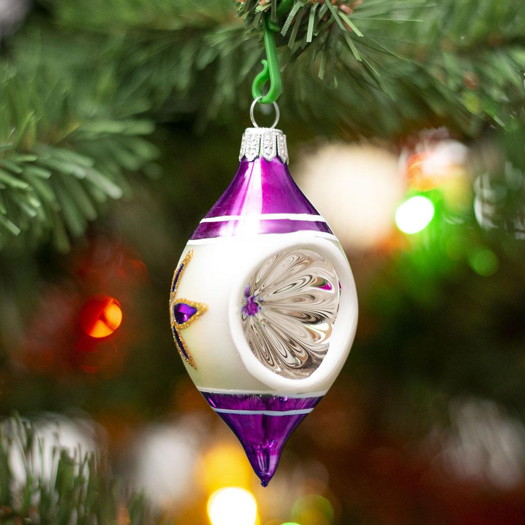 Баубл має металевий гачок. Оформлений вручну. Через ручну продуктивність дрібнички можуть дещо відрізнятися.