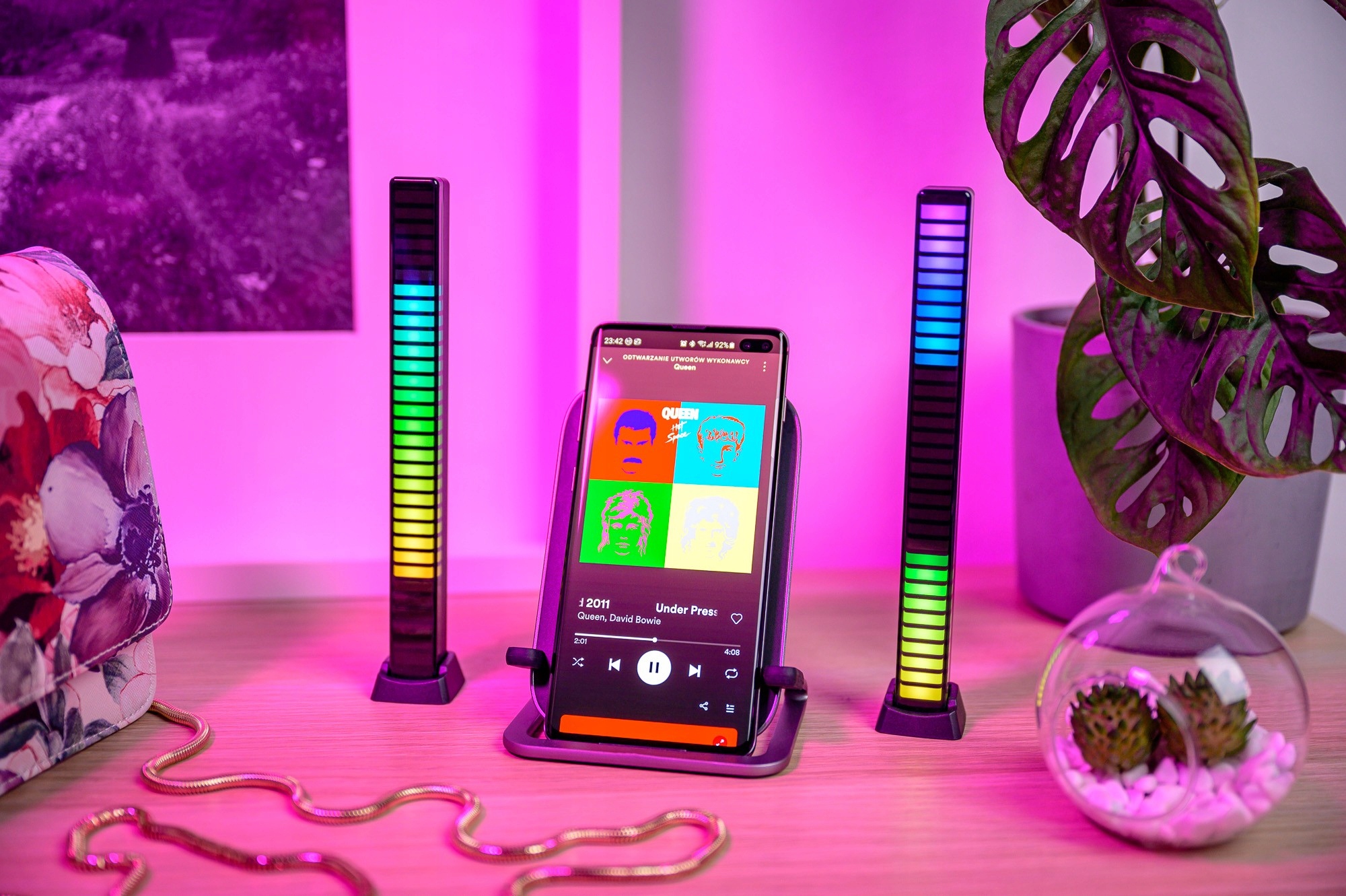 Еквалайзер RGB Redleaf 32LED 3d — це унікальна світлова колона, оснащена 32 світлодіодами, яка реагує на звук у реальному часі. Підкресліть звучання улюблених пісень або створіть неповторну атмосферу вдома! Це також чудове доповнення до ігрової підставки та альтернатива технології Ambilight, яка використовується в телевізорах. Пристрій пропонує 153 комбінації світлових анімацій у різних кольорах. Додаток для смартфона дозволяє дистанційно керувати панеллю, а також керувати групою з кількох пристроїв одночасно. Спеціальний режим роботи означає, що еквалайзер також може працювати як... аркадна гра. Redleaf 32LED 3d також пропонує унікальний ефект тривимірної анімації. Світлодіодна панель простягається від передньої частини еквалайзера до його бічних країв, що робить візуалізацію ще кращою.