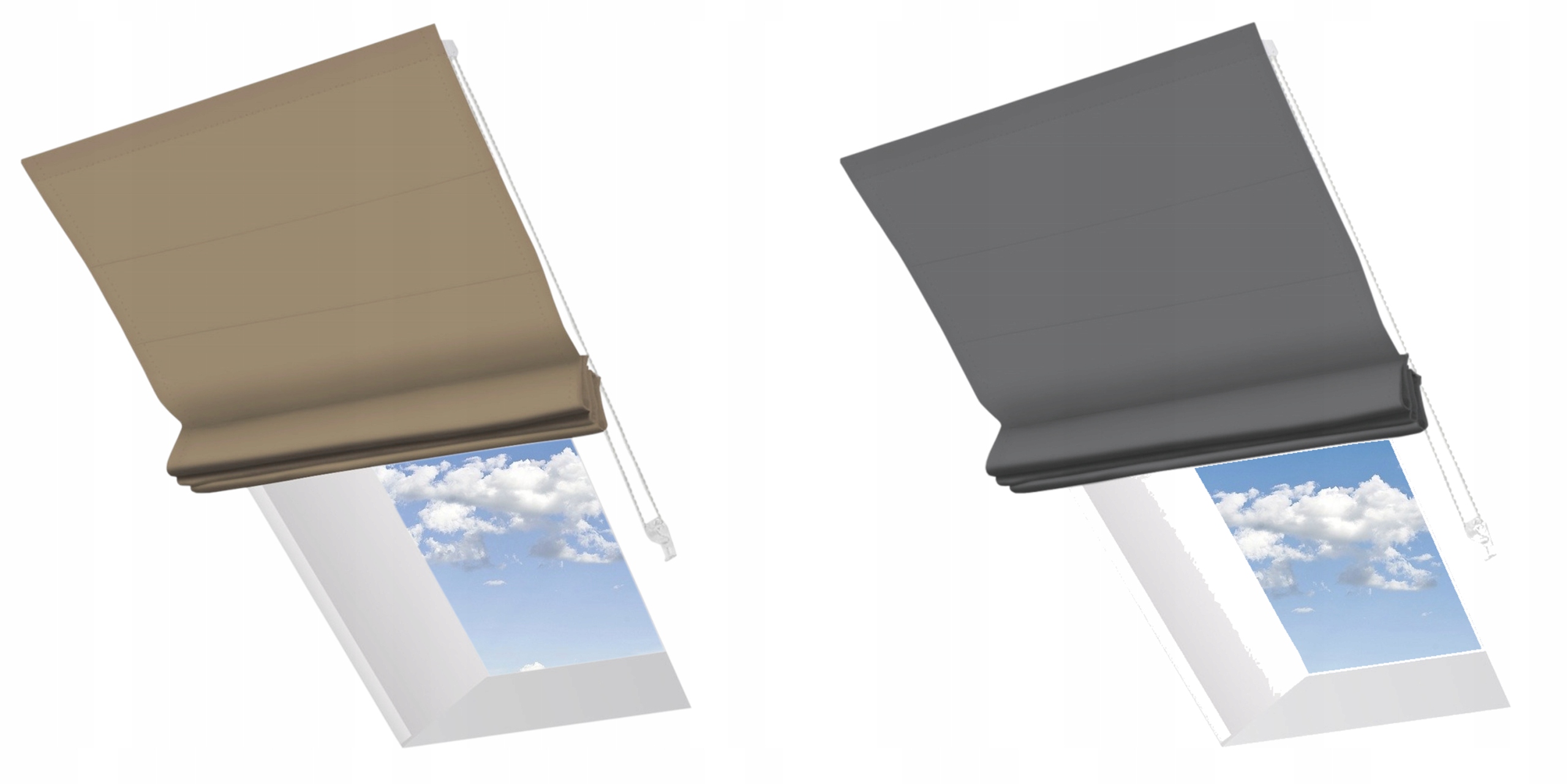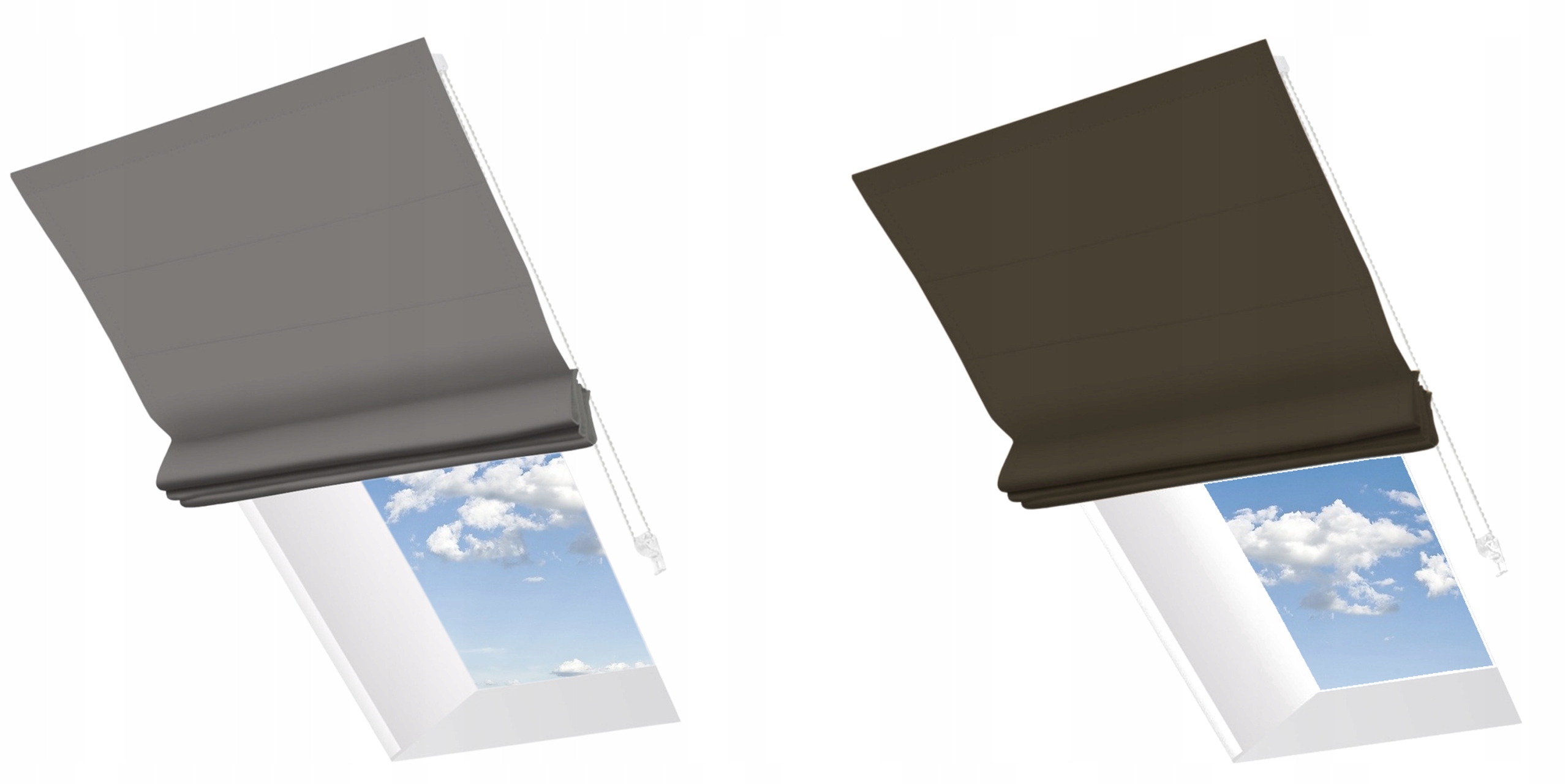 Завдяки використанню алюмінієвих напрямних із повзунками, оснащеними кліпсами, які ми кріпимо до стрижня, розташованого в тунелі. Рулонна штора може закрити нішу мансардного вікна навіть під кутом <>30°
