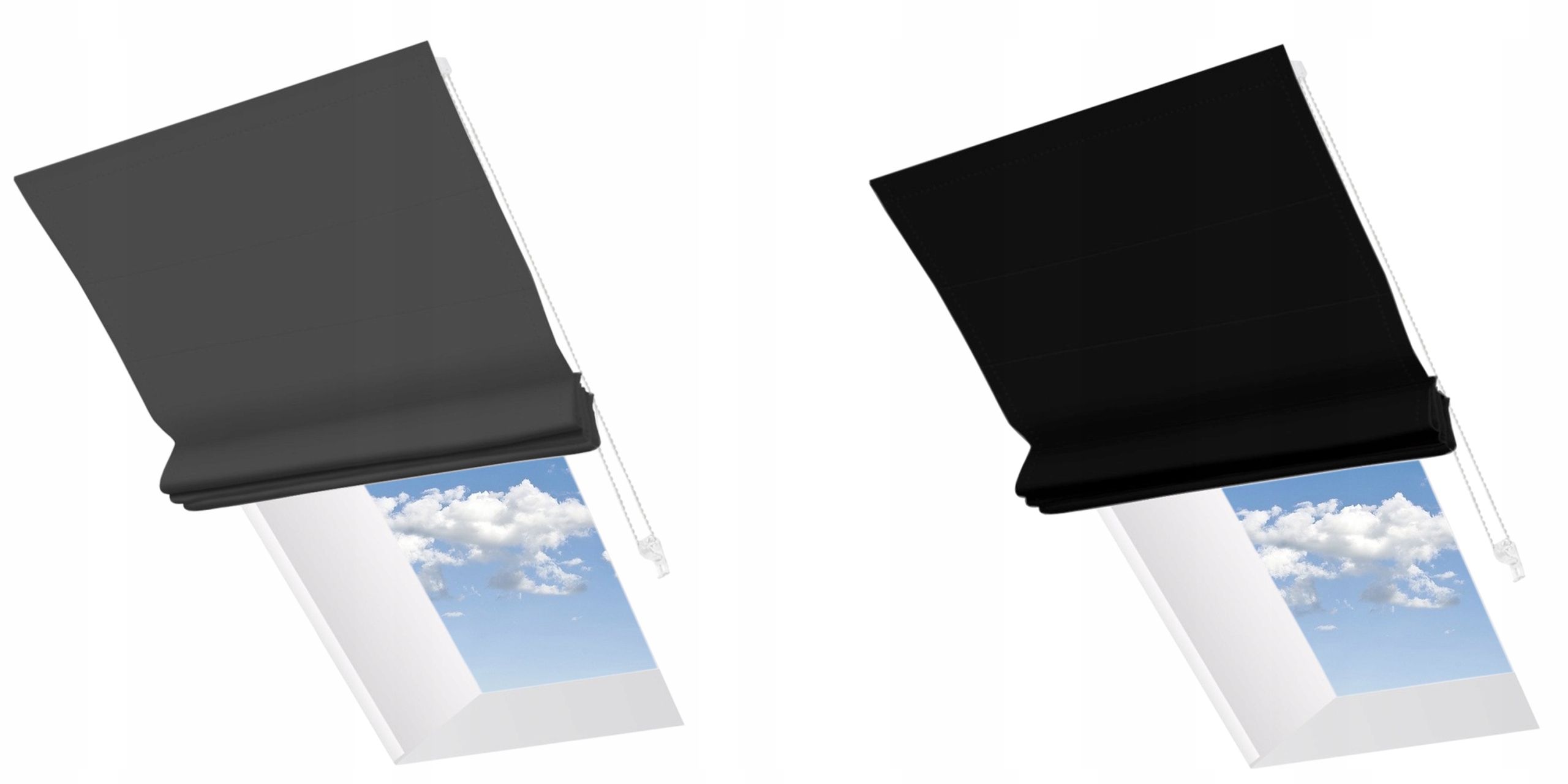 Предмет продажу повна римська штора на алюмінієвій рейці з ланцюжковою системою та напрямними для ніші мансардного вікна, виготовлена на замовлення з тканини "Блекаут" - Блекаут <93%>.