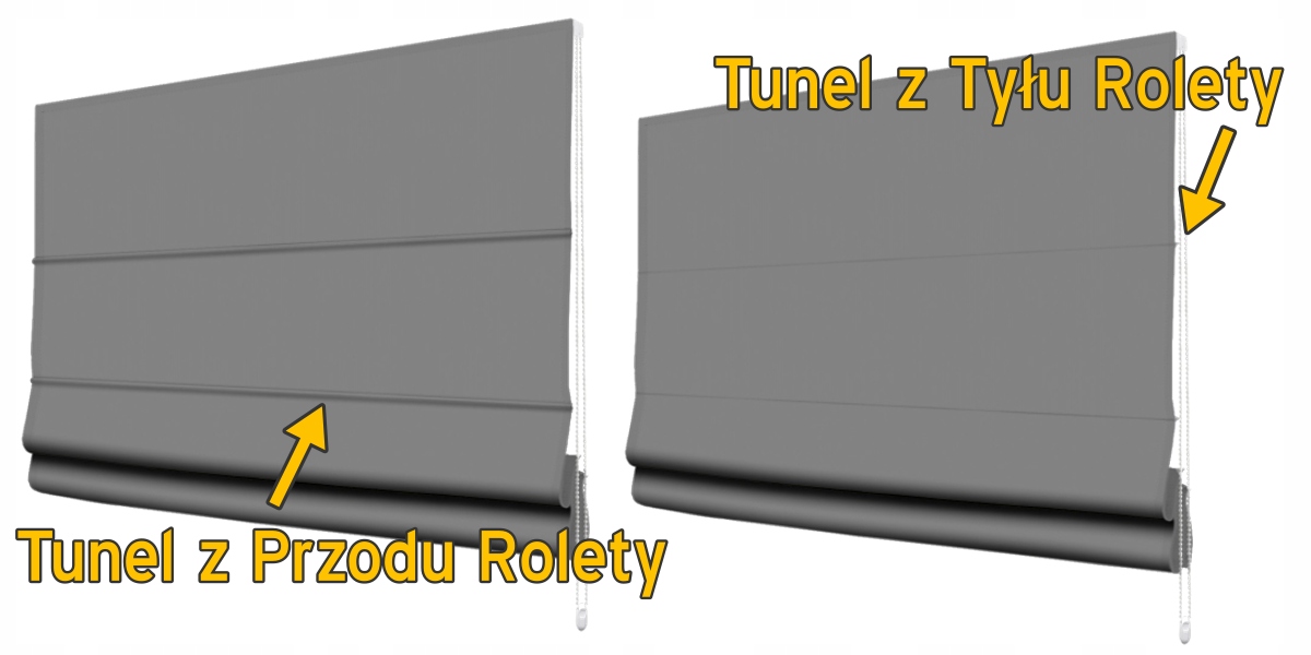 Оскільки тунелі в цьому римському штори шиються вручну, ми можемо вибрати спосіб їх пошиття. Вони можуть бути на передній або задній частині рулонних штор.