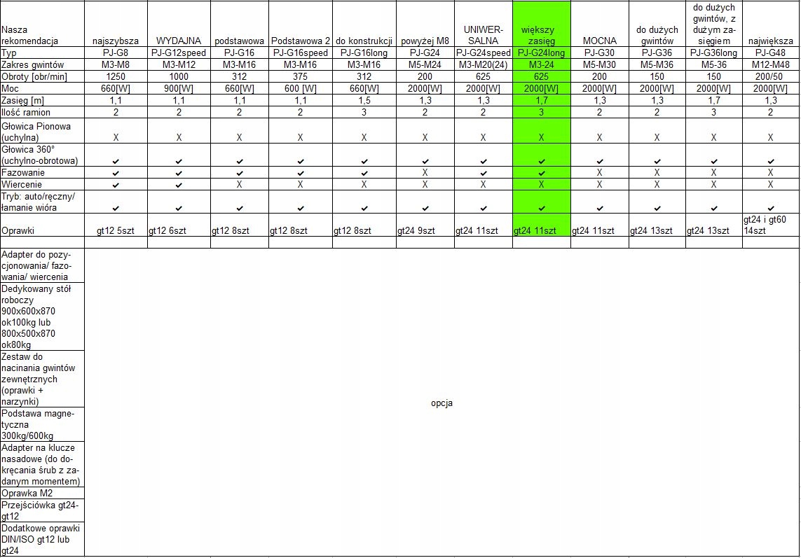 Пропонований нижче верстат порівнюється з усім сімейством різьбонарізних верстатів PJ-G від Ramech