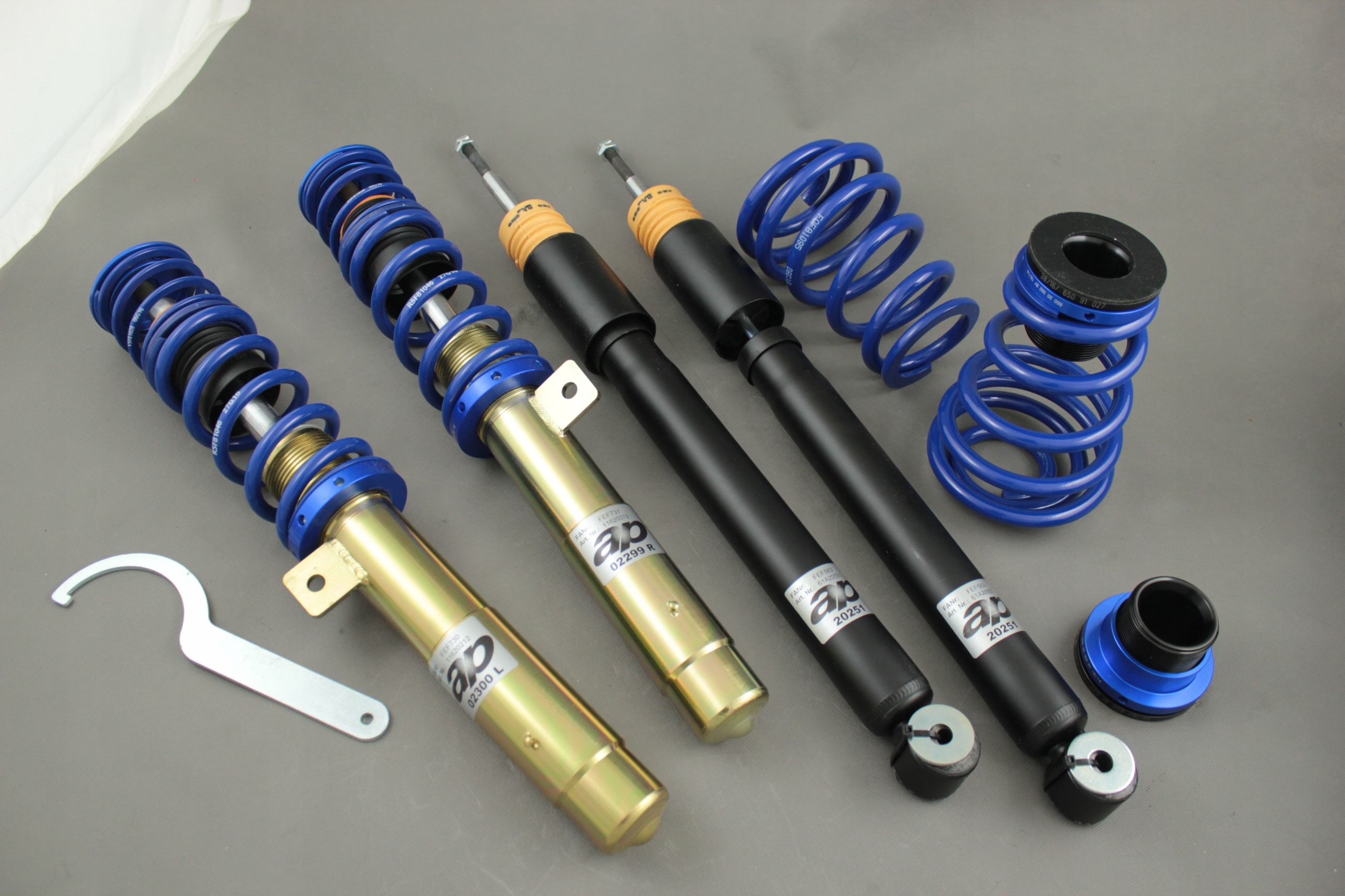 AP Sportfahrwerke пропонує високоякісні набори підвіски вже більше 10 років. Якість та безпека продуктів AP підтверджуються сертифікатом TUV. Роки в індустрії підвіски дозволяли задовольнити найвищі очікування любителів динамічного водіння. У призупиненні AP найважливішим аспектом є динаміка та безпека. Незважаючи на дуже хорошу якість, було отримано велике коефіцієнт якості ціни.