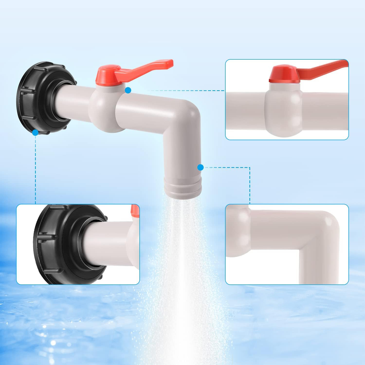 ✔️✔️ Цей 90-градусний перехідник для резервуара IBC є ідеальним аксесуаром для саду, підходить для резервуара/вентиля резервуара (DN40/50 ) з грубою різьбою .