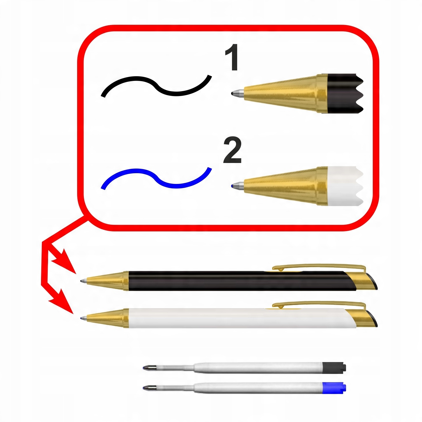 Набір - дві металеві ручки, чорна та біла з золотим покриттям.