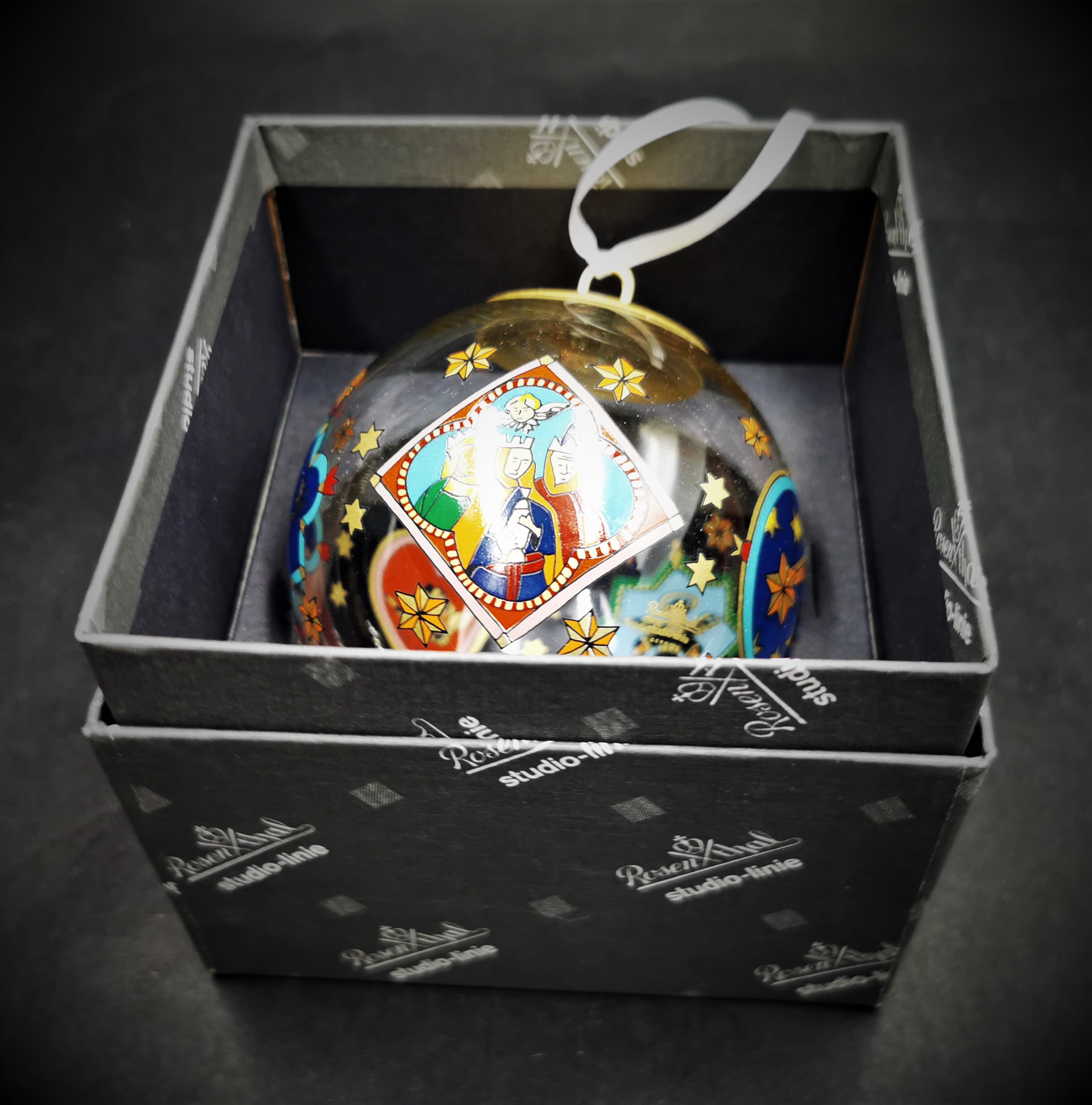 Представляємо вам унікальну різдвяну підвіску від відомої компанії Roshenthal.Ферешка виготовлена з високоякісного скла.Кольори у відтінках золота та різдвяного червоного, з помітними фігурами ангелів та трьох королів , тому ототожнюється з Різдвом. Фенечка упакована в оригінальну коробку, що дозволяє надійно зберігати її і стане вишуканим подарунком для особливої людини.Безсумнівно, це унікальний продукт, який важко знайти на антикварному ринку - фенечка, крім бренду Rosenthal. підпис, має підпис дизайнера - Sanja Zivo, яка вже багато років співпрацює з брендом у багатьох інших проектах.
