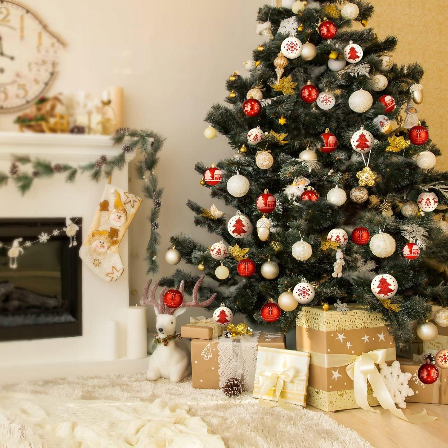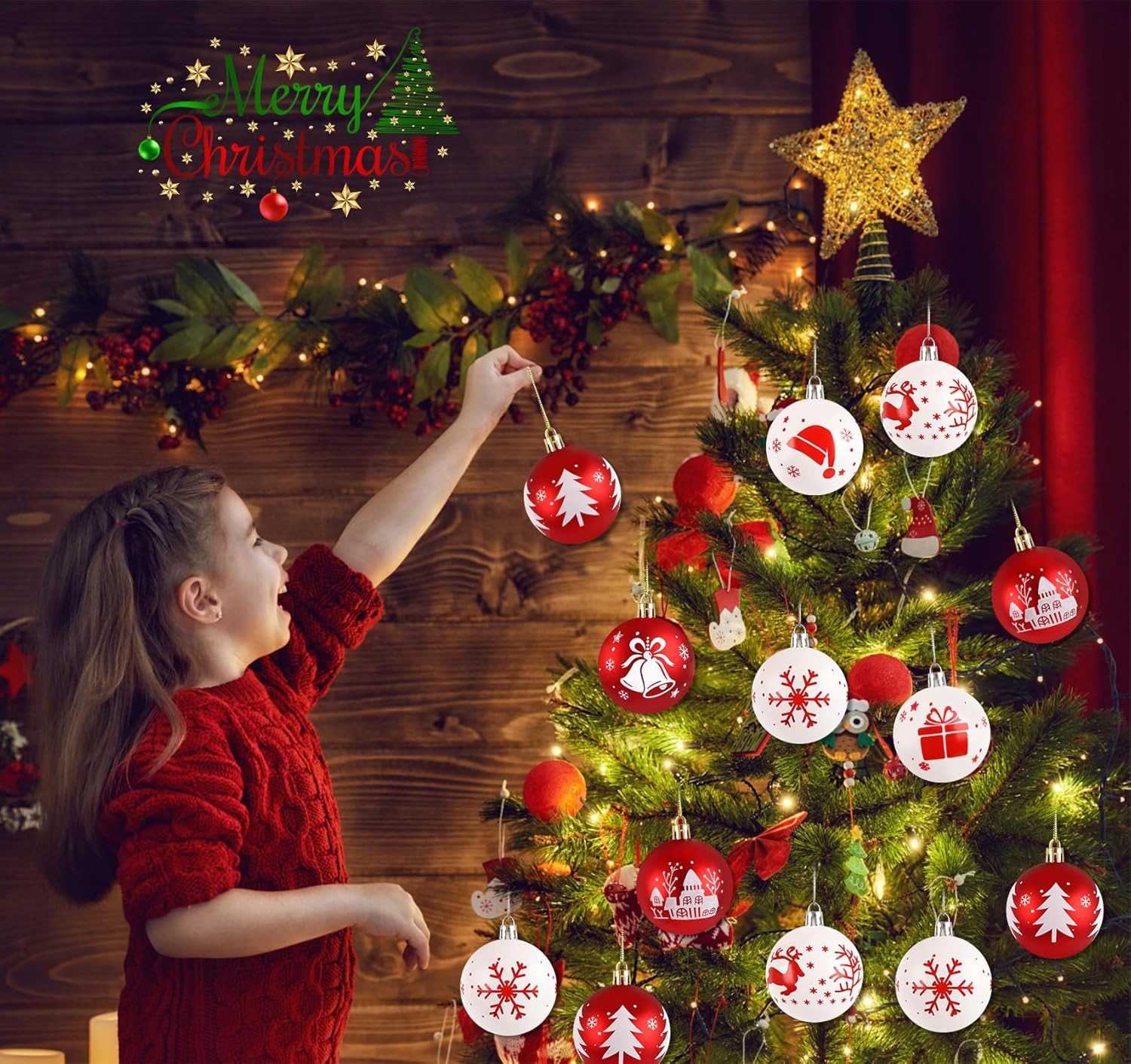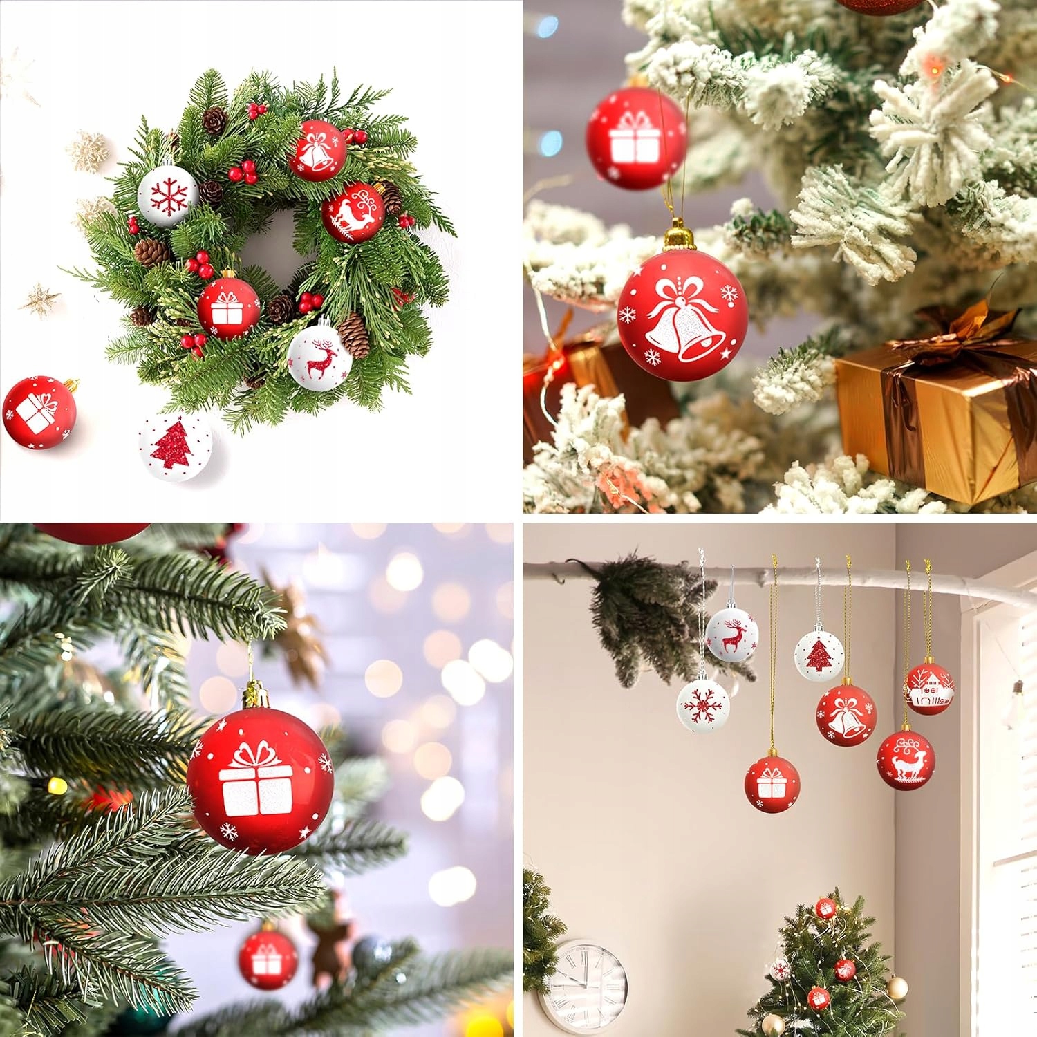 Наш набір пластикових різдвяних дрібничок містить 7 різних вишуканих Стили (сніжинка ліктя, дзвону, подарункова коробка, різдвяна шапка, ялинка, замок) Всього 16 х 6 см червоних та білих різдвяних кульок. Високоякісна ручна ручна, вишукана та модна зовнішність, ідеальна прикраса ялинки