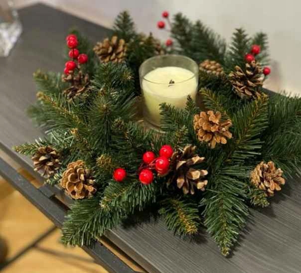 РІЗДВЯНИЙ ВІНОК - РІЗДВЯНИЙ КРЕМ - ЯЛИНА + ГОРОБИНА 40СМ