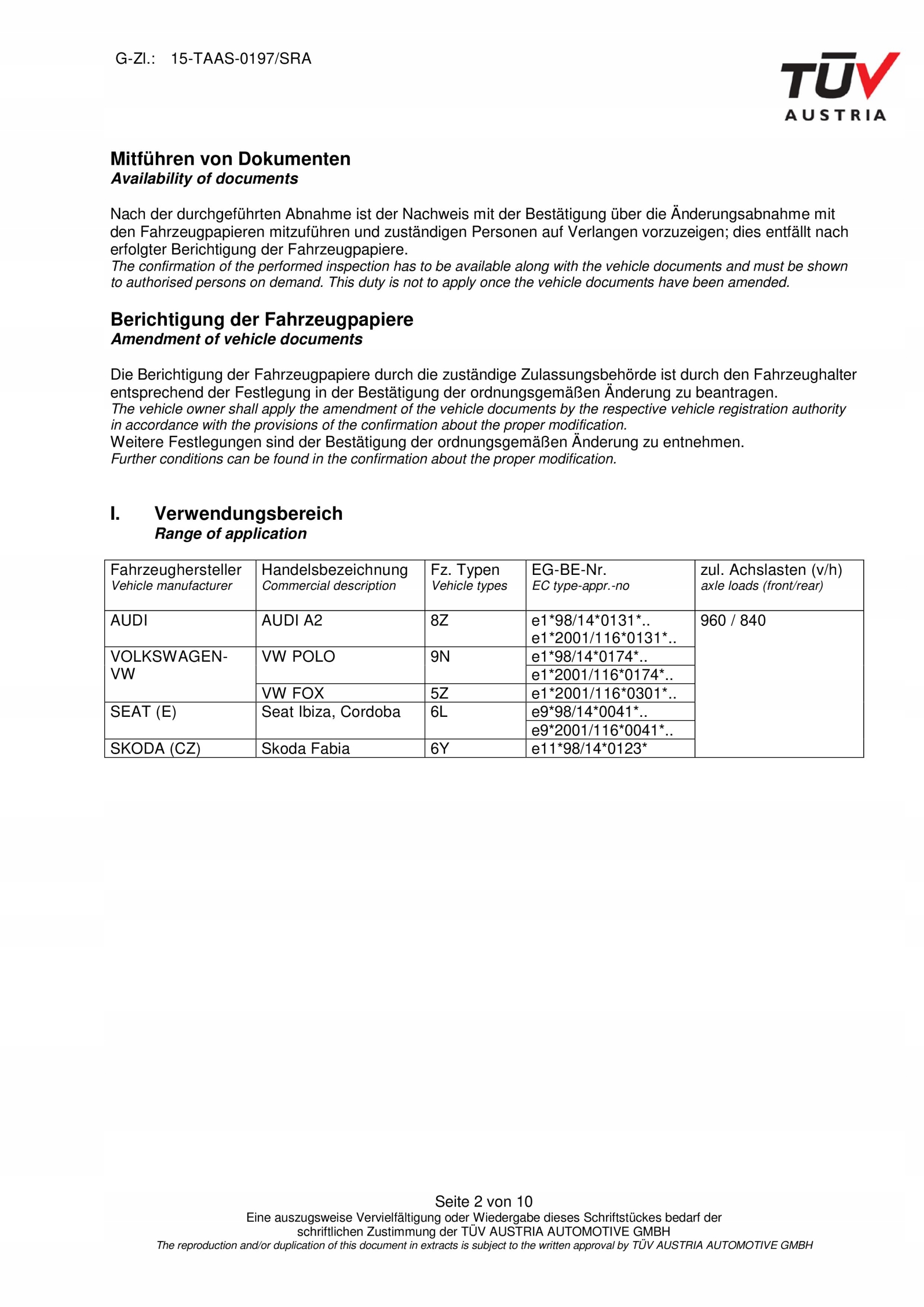 Продукція відповідає всім критеріям та європейським стандартам і допущена до дорожнього руху через німецький документ (сертифікат TUV)