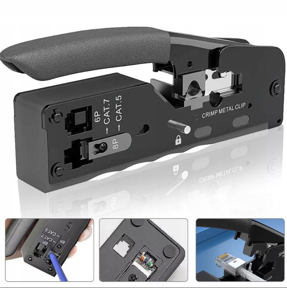 , регулюючи гвинт регулювання до інструменту затягування CAT5, може бути перетворений на інструмент для затискання мережевих роз'ємів CAT6 та роз'ємів CAT7, що робить його багатофункціональними. Підходить для всіх CAT5, CAT5E, CAT6, CAT6A, CAT7 та CAT7A.