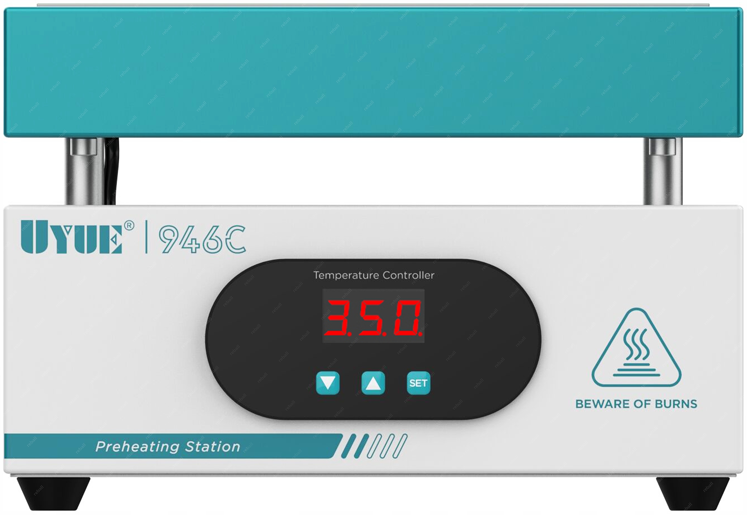 Універсальний обігрівач uyue 946c призначений, серед інших, для світлодіодних ресурсів, нагрівання РК -екранів та розповсюдження етикетки на системах BGA. 4 Це означає повторюваність процесу і зменшує можливість перегріву та пошкодження систем BGA.