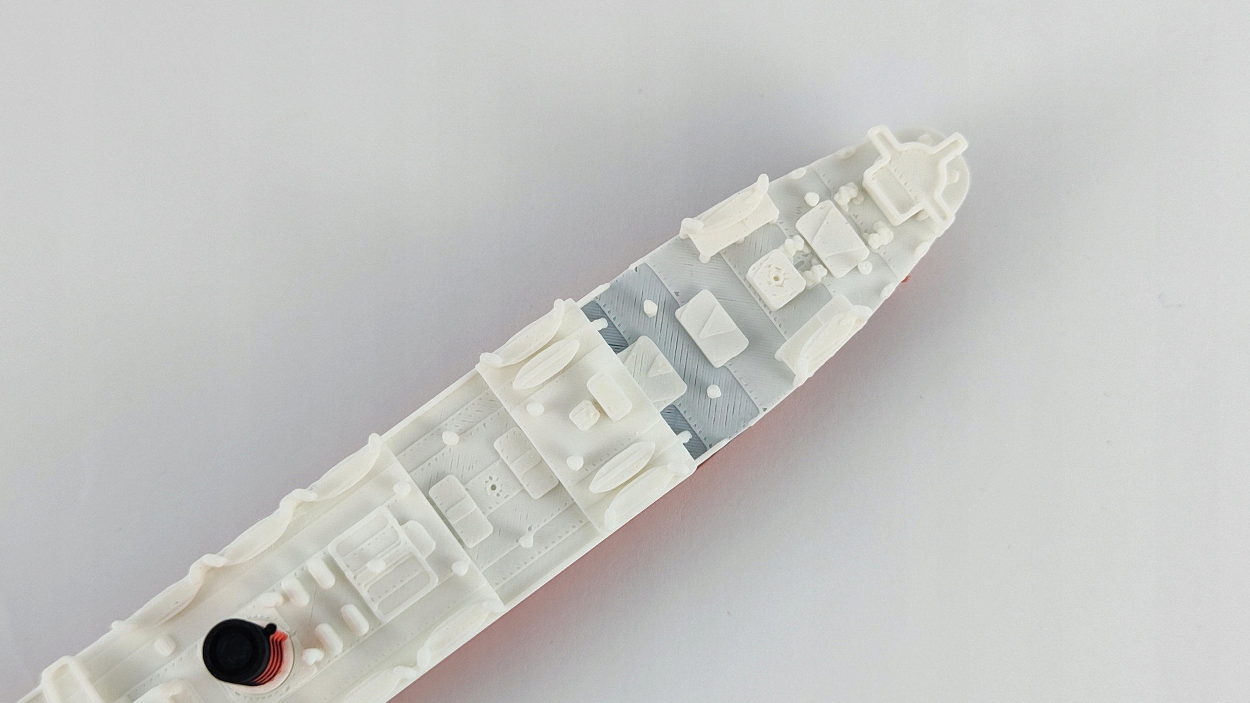 Модель, зроблена в технології 3D -друку, за вражаючим масштабом 1: 780 відтворює характерний силует корабля, підтримуючи його пропорції та кольори. Суть вашої колекції!
