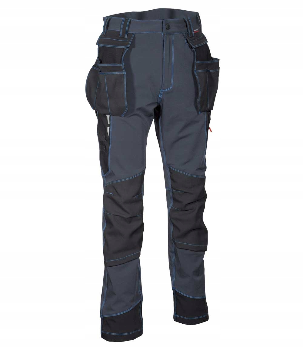 ОПИС: 2 широкі передні кишені, подвійна задня кишеня із застібкою на липучці, молоткова петля, ергономічна форма для колін і ніг, нейлонові регульовані кишені для наколінників, нейлонові зовнішні кишені для цвяхів, знімна блискавка, світловідбиваючі вставки, кишеня для лінійки, бічна кишеня з подвійним отвором (на липучці та блискавці), еластична тканина