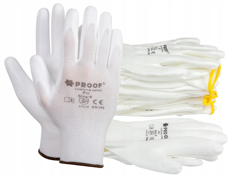 РОБОЧІ ЗАХИСНІ РУКАВИЧКИ PROOF WHITE З ПОЛІУРЕТАНОВИМ ПОКРИТТЕМ РОЗМ. 8 10 ПАР