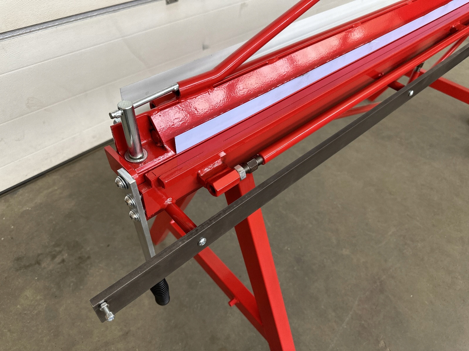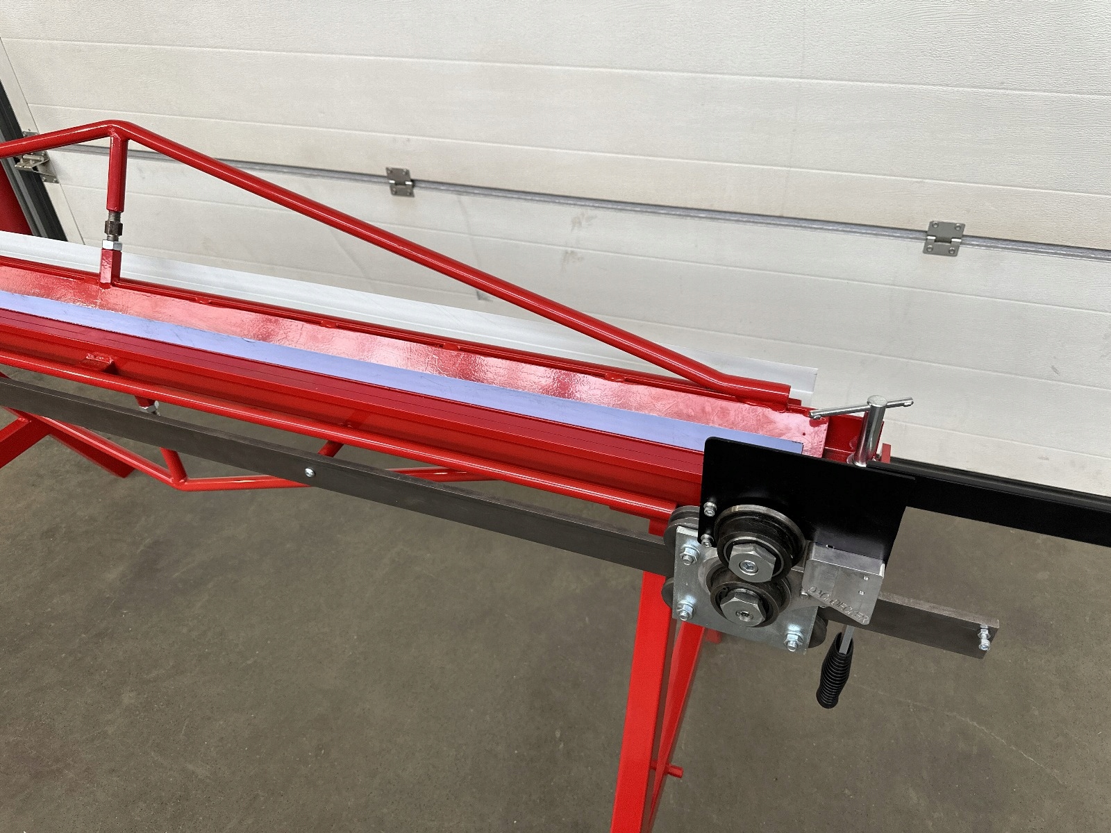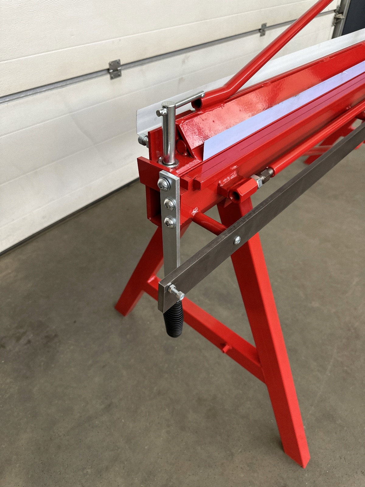 -rear камінь, оснащений опором (1000 мм)-(додаткове обладнання) дозволяє розміщувати листовий метал і вільний рух. Його можна використовувати як місце для розміщення аркушів. Оснащений за шкалою, яка дозволяє точно встановити зігнутий і розрізаний аркуш. Це дозволяє після попереднього визначення та блокування обмежувача кута в діапазоні 0-120 градусів, що повторюється згинанням листового металу в серійному виробництві.