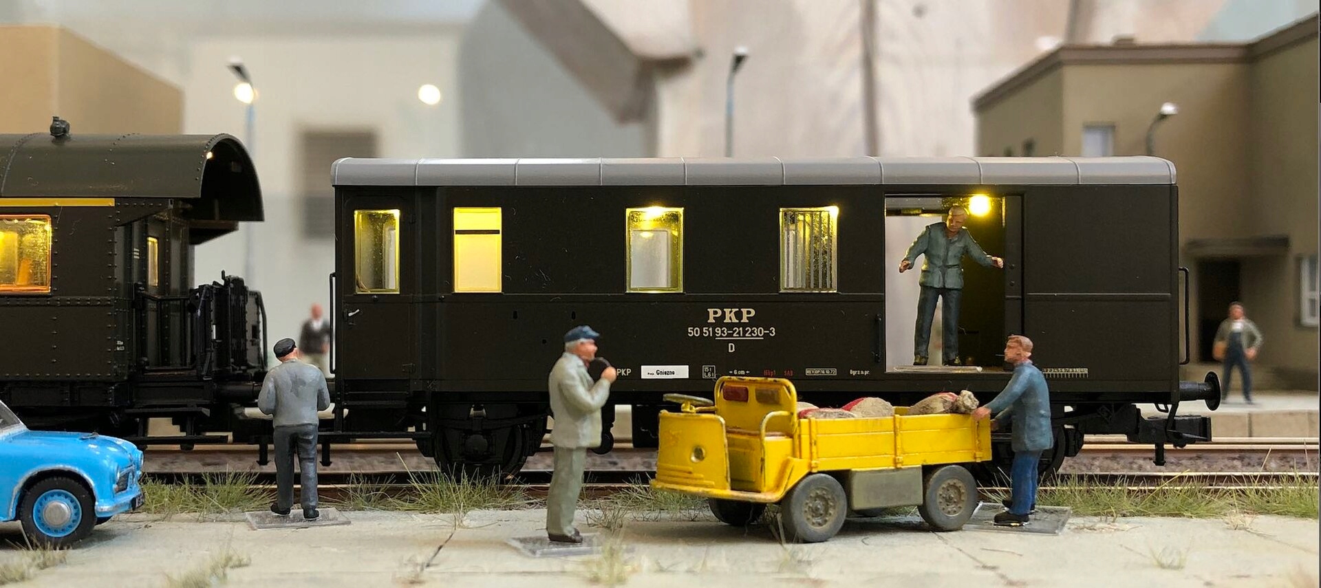 Світлодіоди, розташовані відповідно до конструкції вагона, теплого білого кольору. Вбудований світлодіодний блок живлення та незалежна електроніка. У набір входять пластини для виготовлення струмоприймачів.