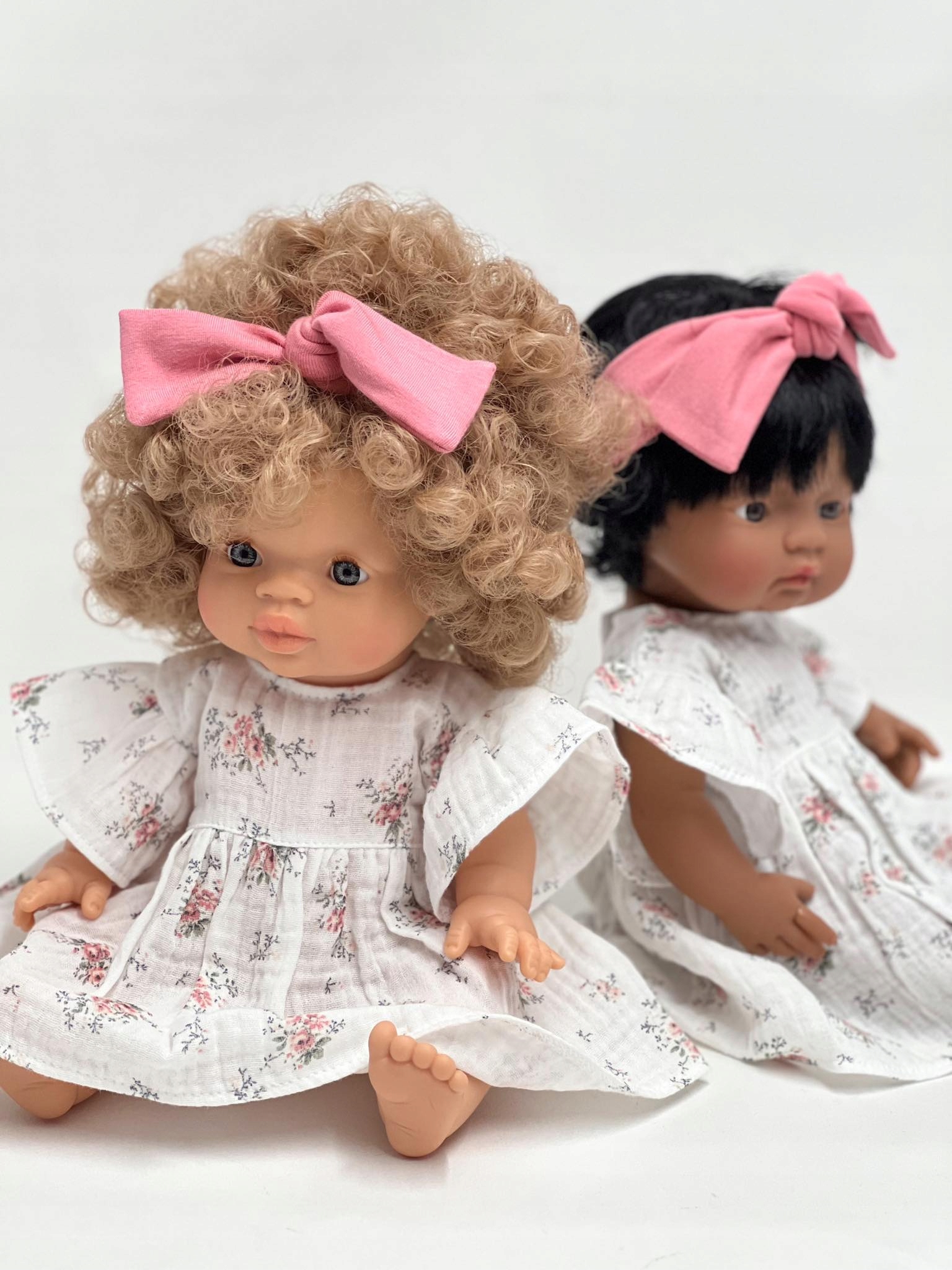 Муслінове плаття, пришиті спеціально для іспанських ляльок. Вони також відповідають ляльям -міні -ляльок та ляльок Паола Рейна