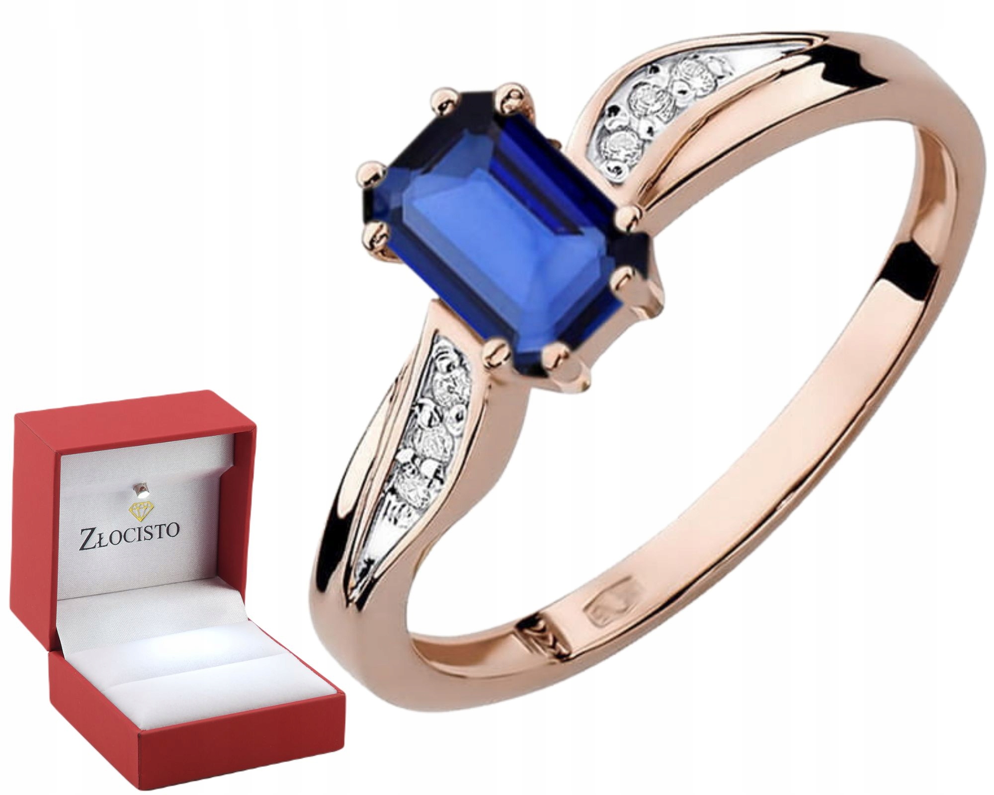 Рожеве золото кільце з сапфіром та діамантами репетиція 585 14k для подарунка
