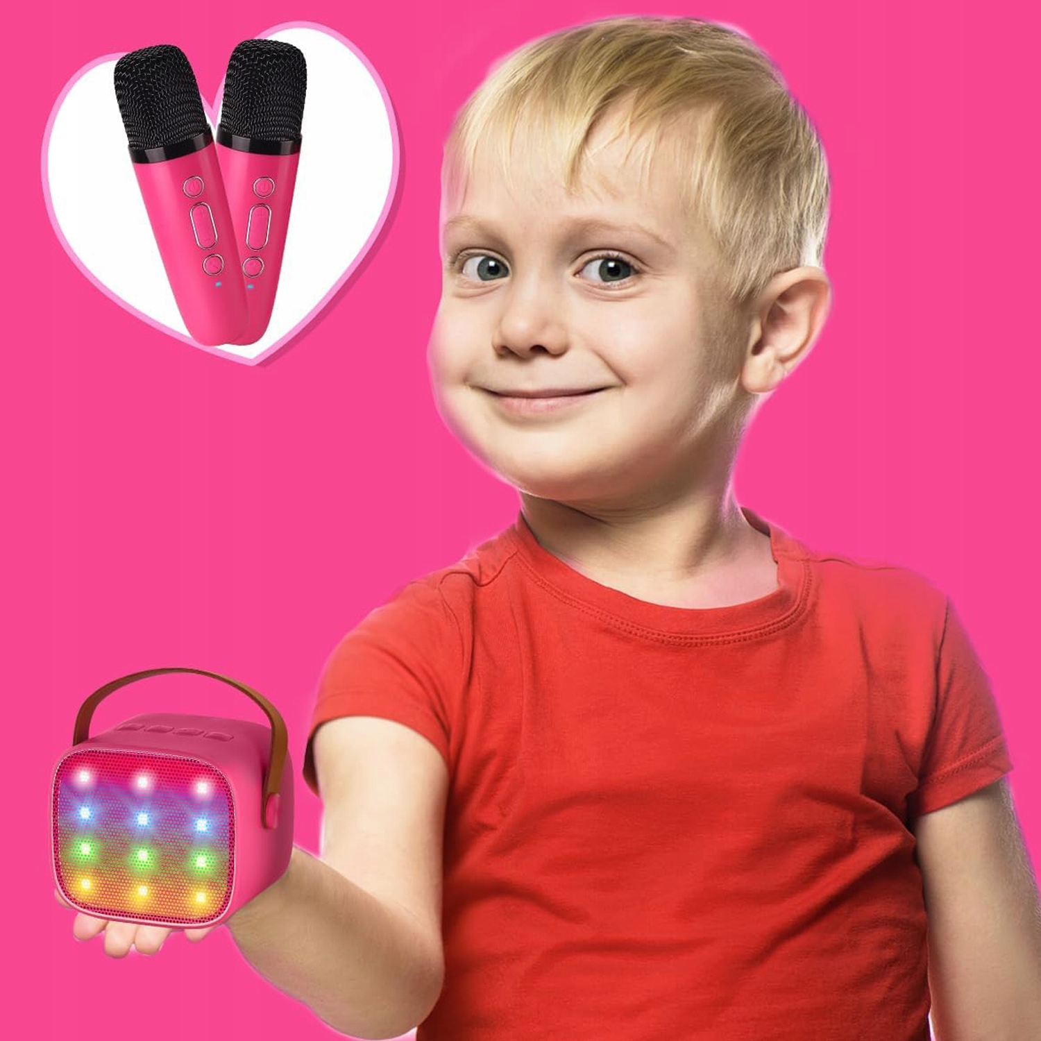 Рожевий бездротовий портативний караоке Bluetooth 2 Mikrofon
