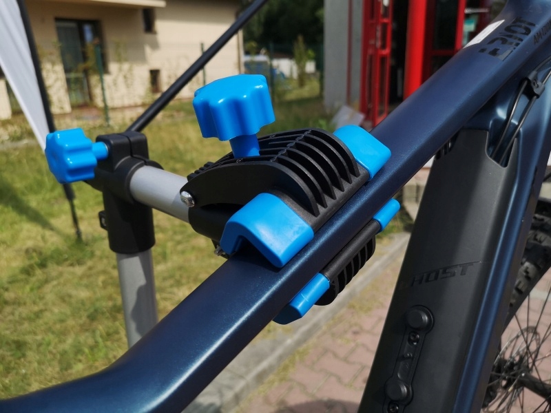 Підставка дозволяє всебічно коригувати відстань та висоту, що дозволяє обслуговувати велосипеди різного розміру, а також відповідати налаштуванням з людиною, яка виконує послугу, так що позиція була як ергономічна та комфортна.
