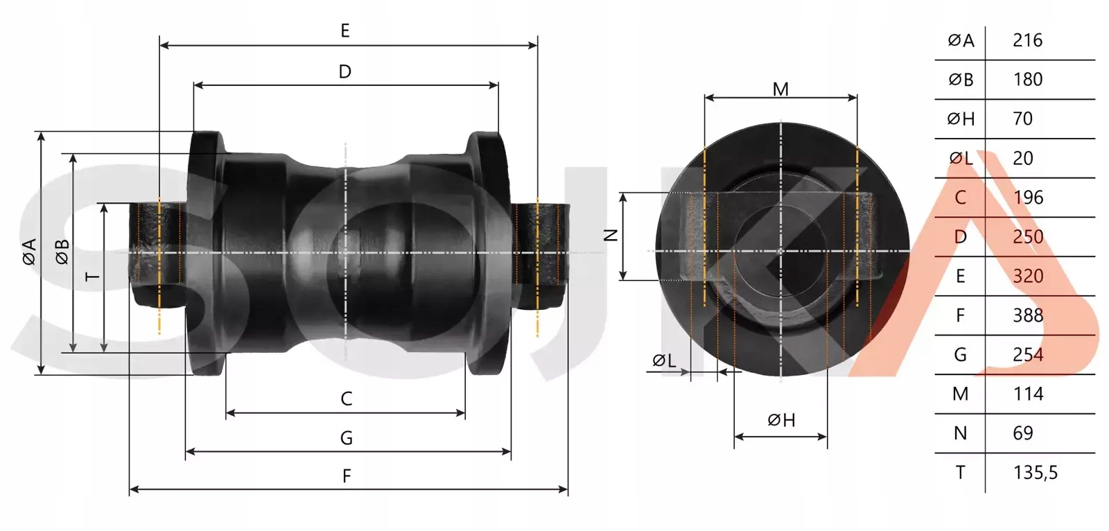 Представлений опорний коток є високоякісним продуктом, призначеним для багатьох моделей екскаваторів відомого бренду VOLVO.