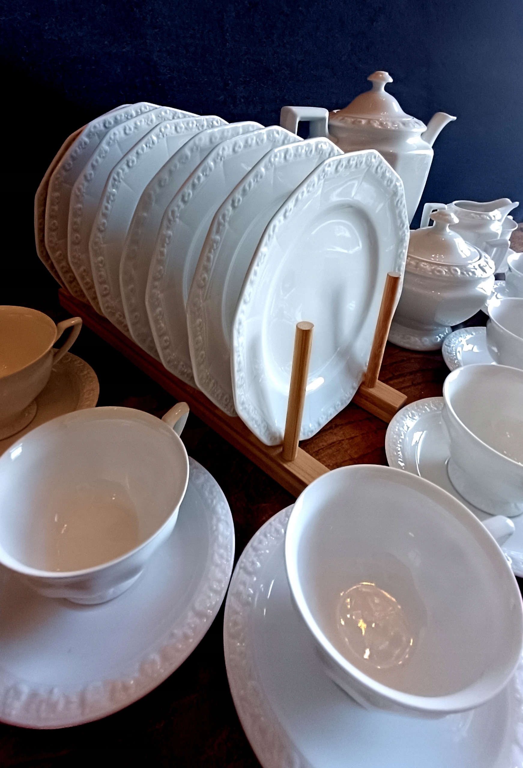 Ми представляємо чудову кавову послугу для 12 осіб, виготовлених відомим, відомим німецьким виробництвом Розенталь із знаменитої колекції Biała Maria. 4 І її форма, і рельєфи на околиці у вигляді квітів та темно -синіх плодів дуже характерні для серії Марія. Ця серія була розроблена в 1916 році засновником компанії Філіпа Розентала, особливо в данинах коханій дружині Марії - тому ви вже знаєте, звідки походить ця назва колекції. Прекрасна, позачасова послуга, яка порадує не тільки випадкову людину, але й шанувальник цього бренду та високоякісної продукції. На веб -сайті є 3 різні підписи - видно на фотографіях.