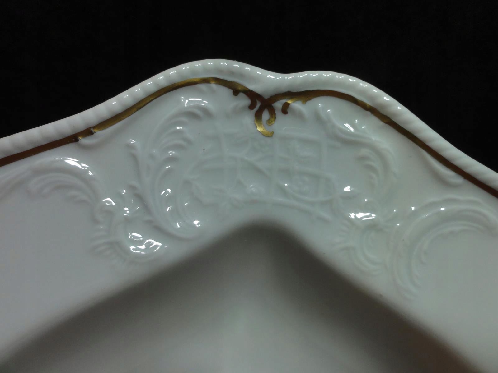 *з білої порцеляни, прикрашена рельєфом, ручна позолота,