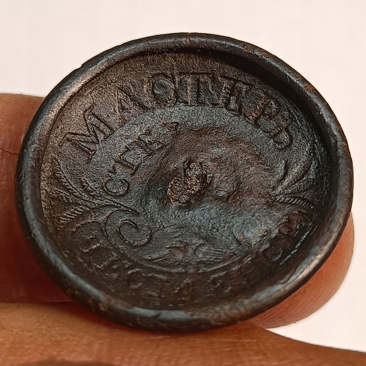 Верхній напис: Мадкаста імені czesmieńsk (чесменс), що підтверджує, що кнопка якось пов'язана з битвою при Чесме.