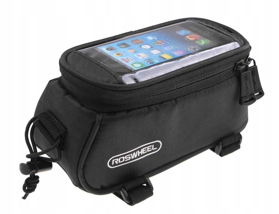 Новий велосипедний кадр з ручкою телефону. Кришка телефону, встановлена на велосипедній рамці. Прозорий вікно з ПВХ пластику. Прозорий вікно дозволяє керувати телефоном як сенсорним екраном, так і за стандартною клавіатурою. Сумка зменшує свою висоту до велосипедиста - це забезпечує кращу видимість екрану. . Сумка має жорстке дно. Рамка та гума Watchtoweer закріплені в мосту. Roswheel Marek Sahoo